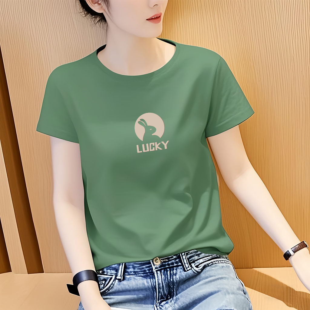 📚 女士宽松大码圆领2025新款夏季短袖t恤印花时尚休闲百搭显瘦上衣