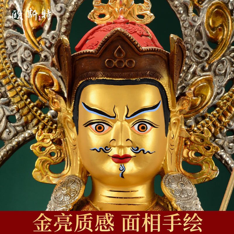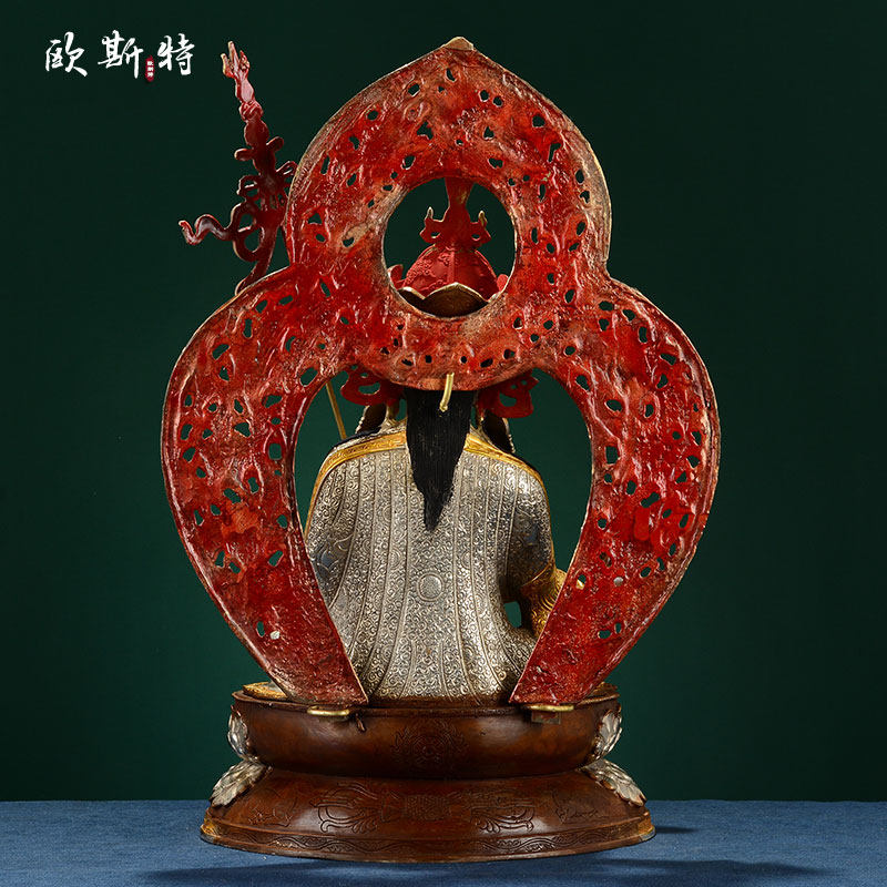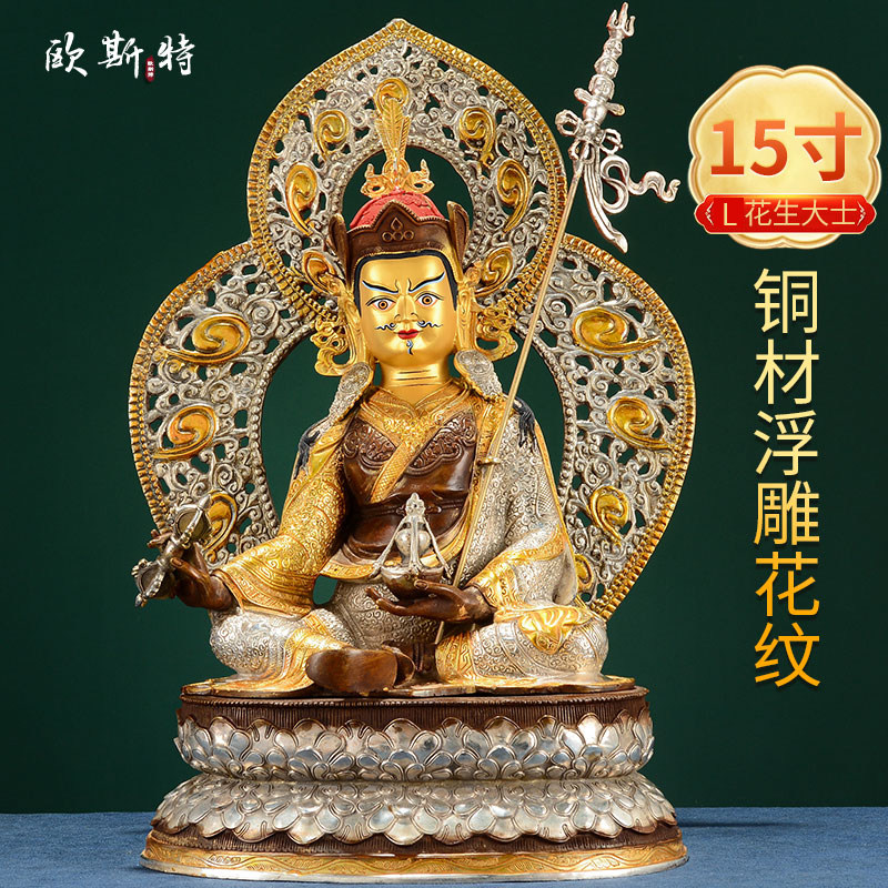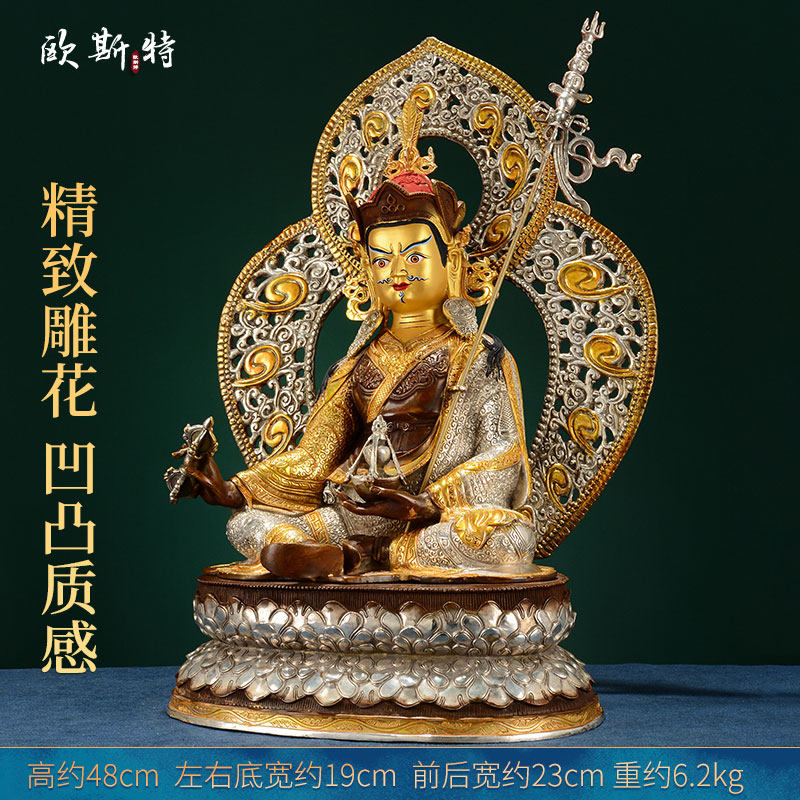📚 欧斯特 莲花生大师铜像摆件 西藏铜镀金鎏银15寸带背光玄关新中式