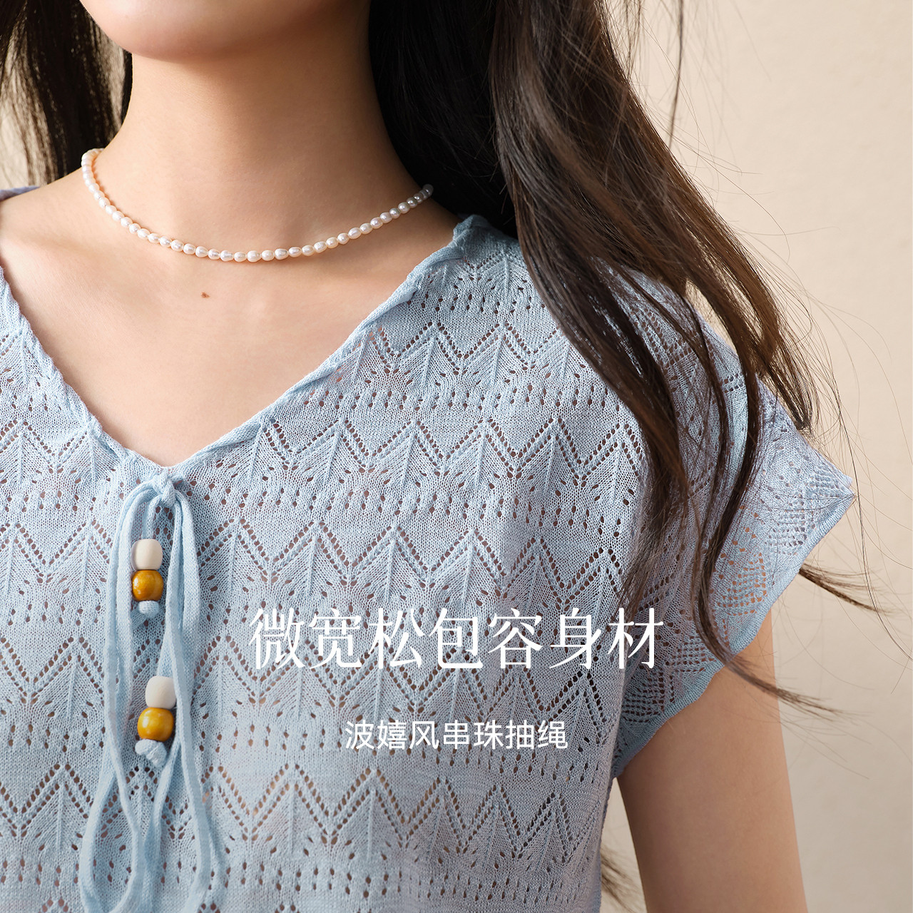 📚 诗凡黎浪漫镂空V领系绳针织衫2025秋新款轻薄慵懒飞飞袖显瘦上衣