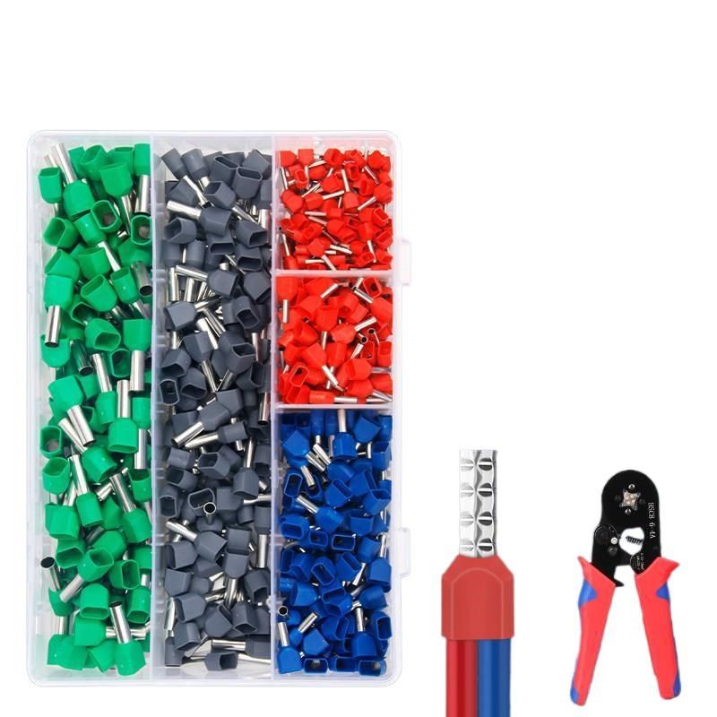 📚 TE双线铜鼻子接线端子冷压针型插针软线并线铜管空开压接针形套装