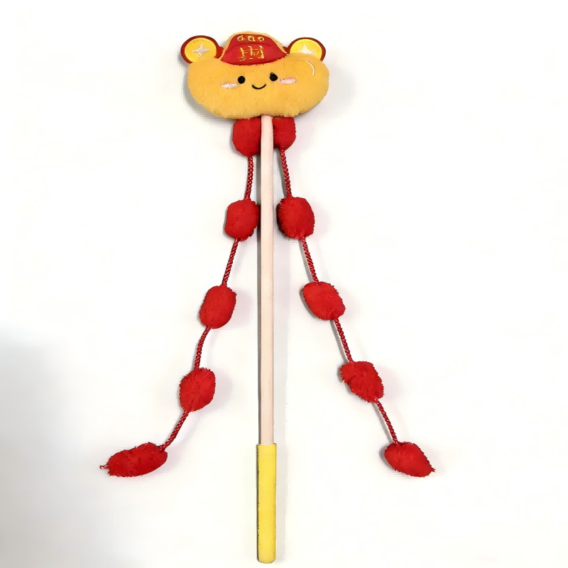 📚 逗猫棒红色长杆流苏糖果色毛绒玩偶耐用猫咪玩具小猫解闷玩具