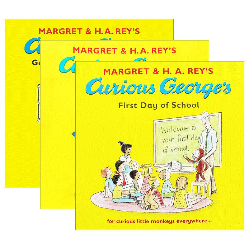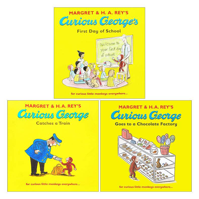 📚 英文原版 Curious George 好奇猴乔治3册 儿童趣味图画故事绘本 赶火车 去巧克力工厂 上学的第一天 英文版 进口英语原版书籍