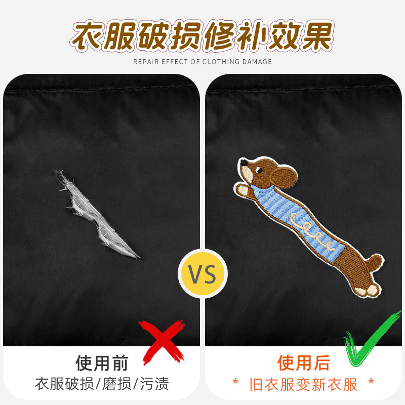 布贴长条羽绒服刺绣修补