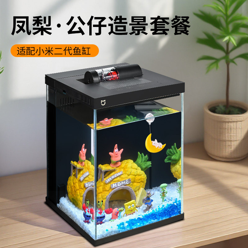📚 适配小米二代智能鱼缸全套造景背景板贴纸高清图卡通壁纸装饰改装