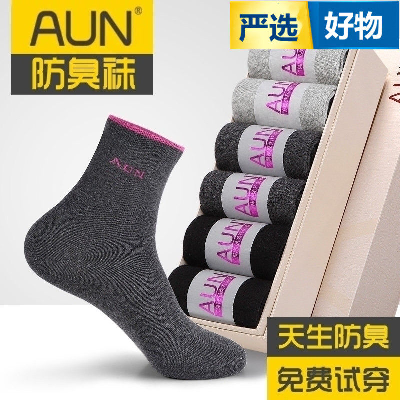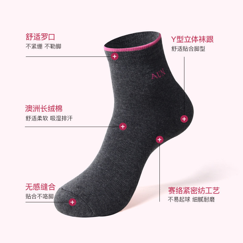 📚 AUN防臭袜子 女士纯棉袜纯色中筒袜全棉质商务袜吸汗秋冬款女棉袜