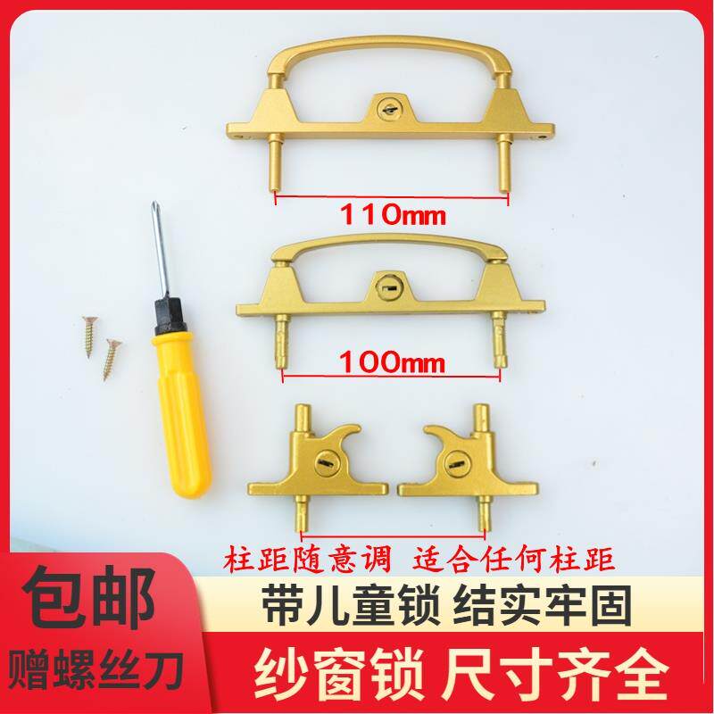 📚 金刚网两柱锁双点锁扣纱窗锁具铝合金带钥匙多点锁门窗配件两点锁