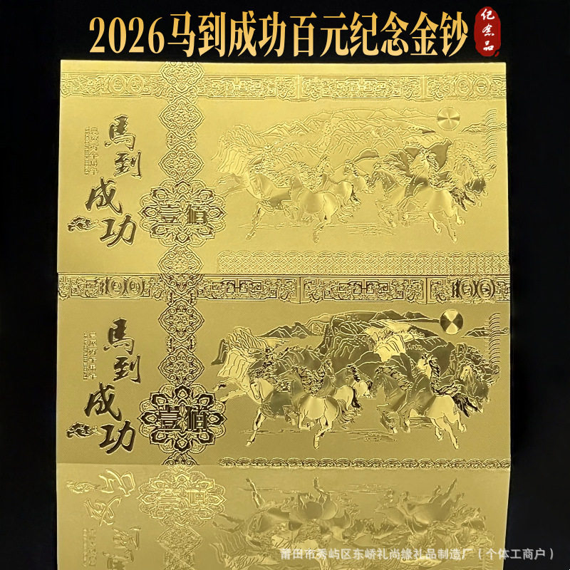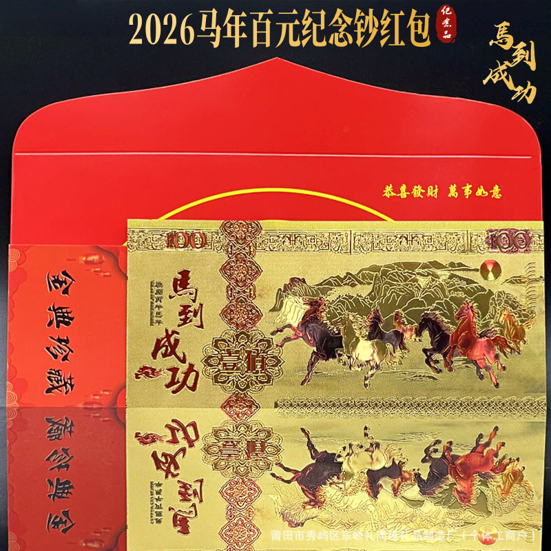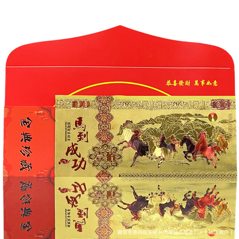 📚 2026马年金箔百元金钞红包马到成功马上有钱金箔金条纪念钞利是封