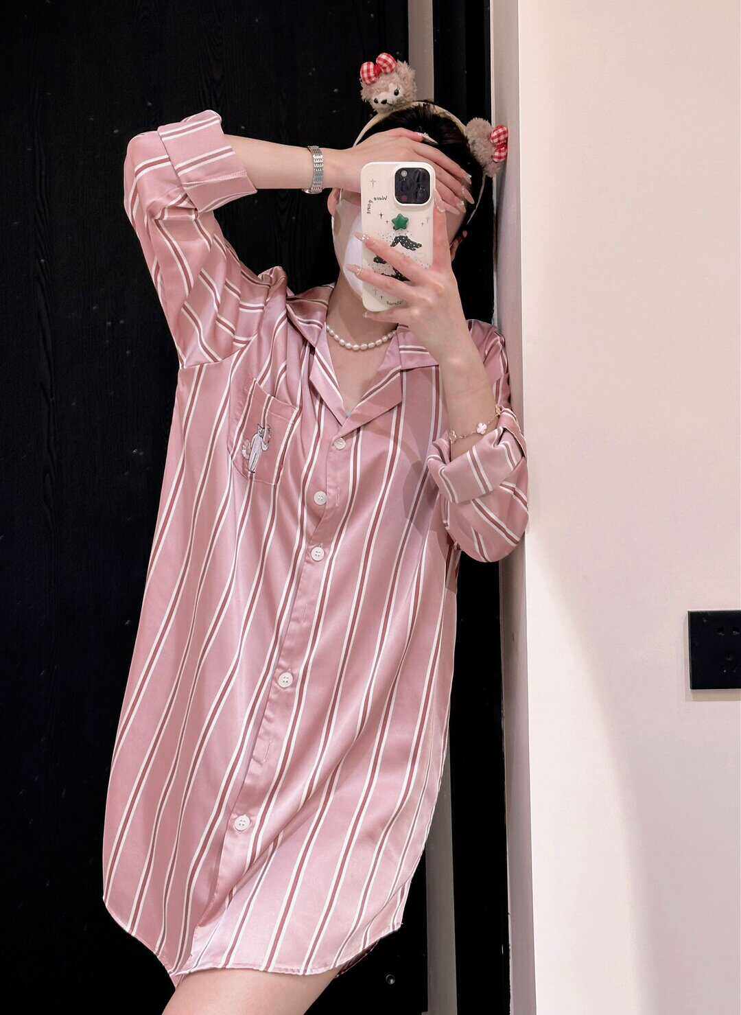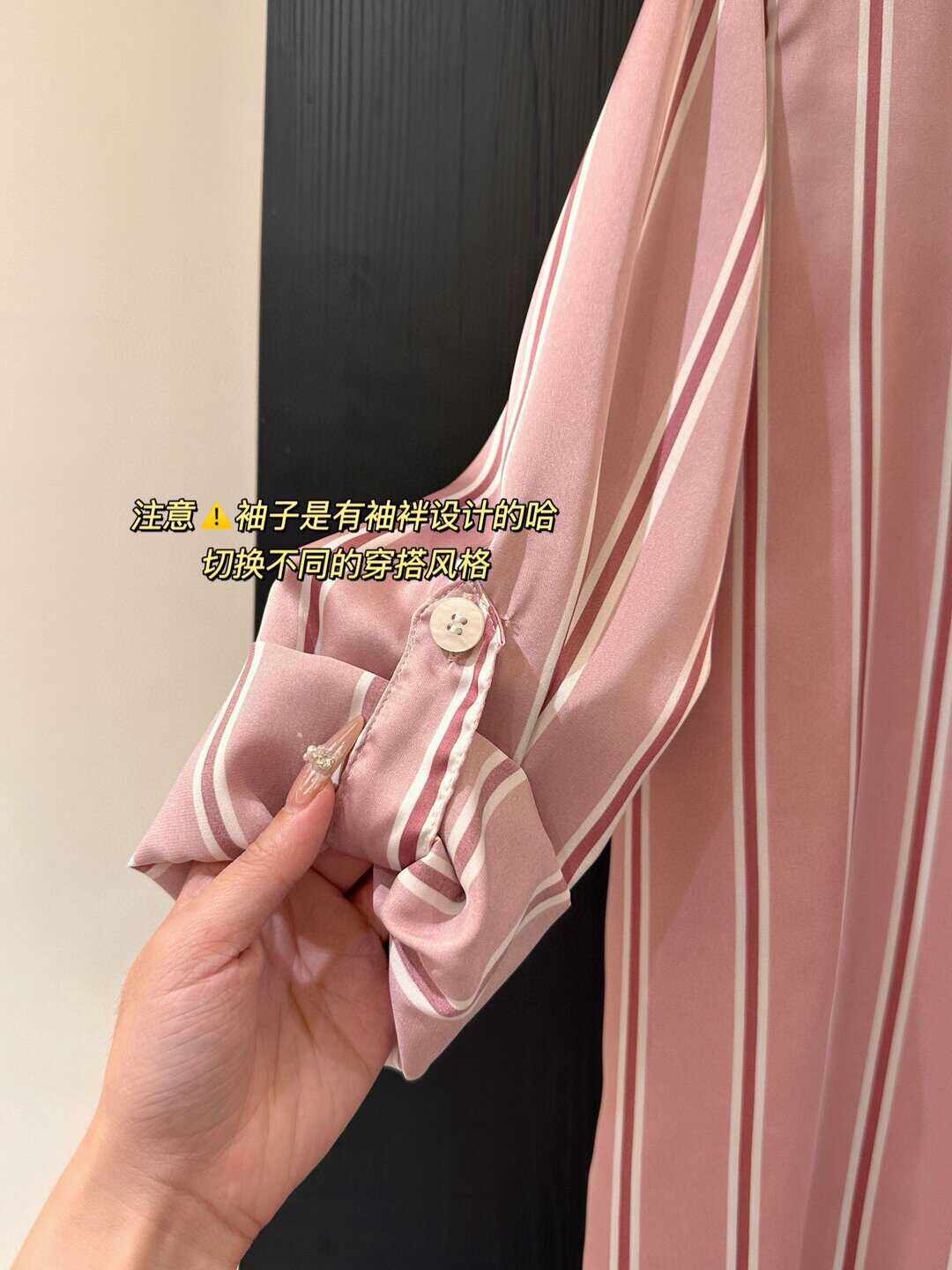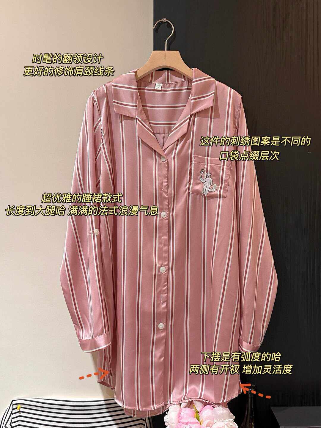 📚 小众轻奢 刘亦菲同款睡衣女粉色条纹男友风性感冰丝衬衫裙中长款