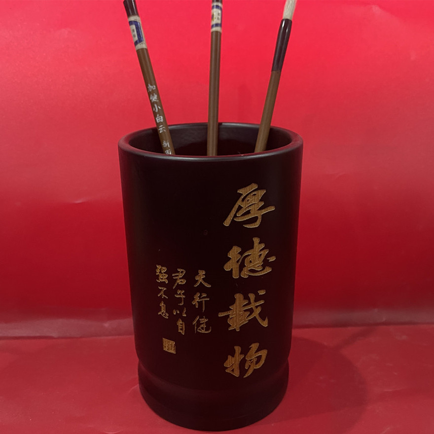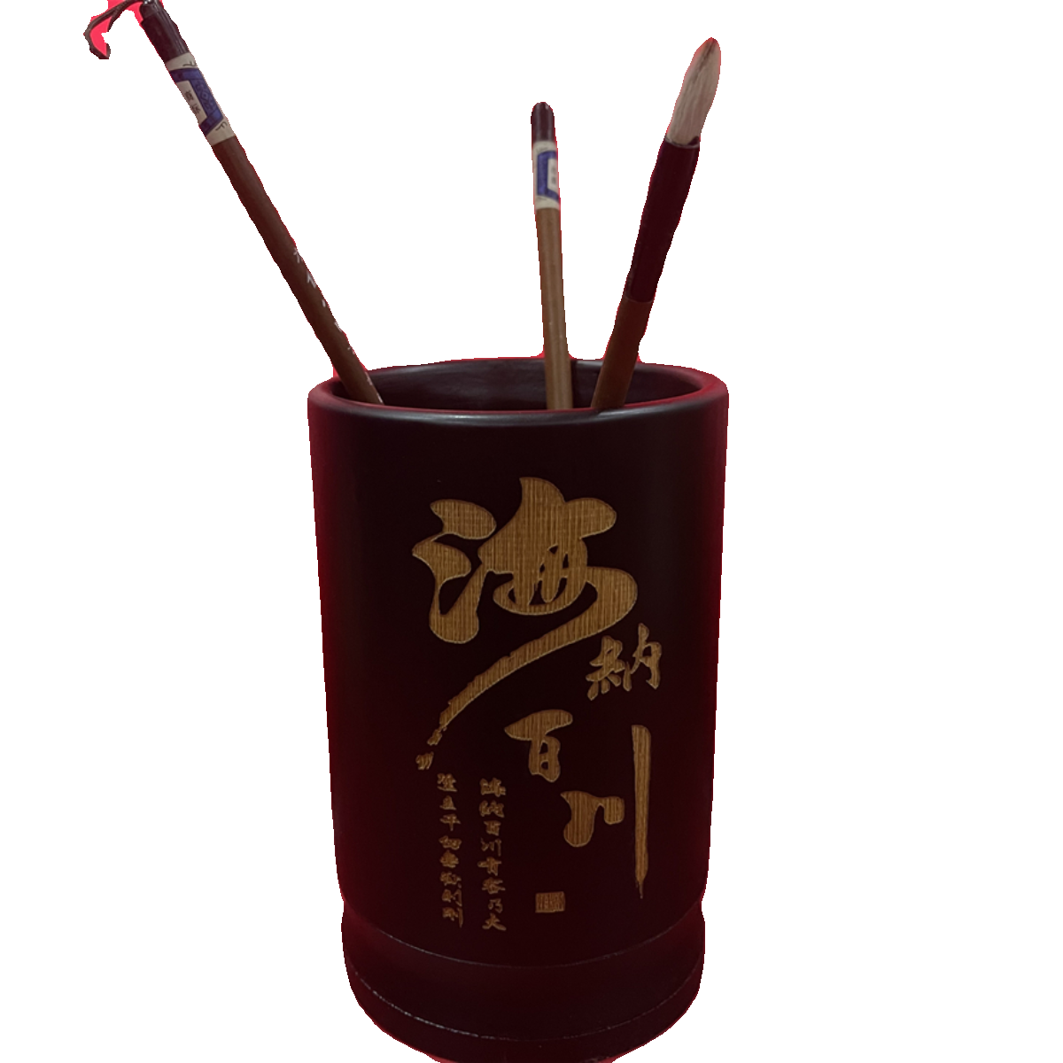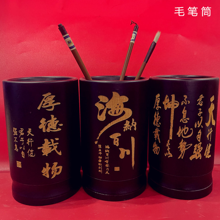 📚 竹雕圆形毛笔筒桌面书法古典摆件文具收纳盒创意定高端定制礼品