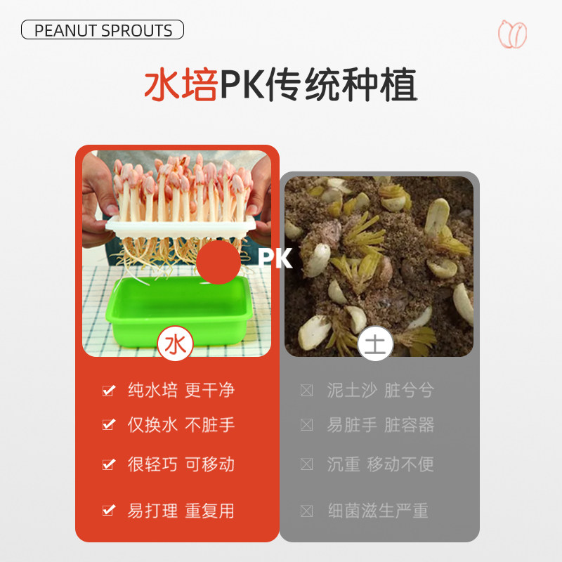 📚 花生芽发芽神器绿豆芽发芽盆芽苗菜育苗盘豆苗水培盒花生苗种植箱