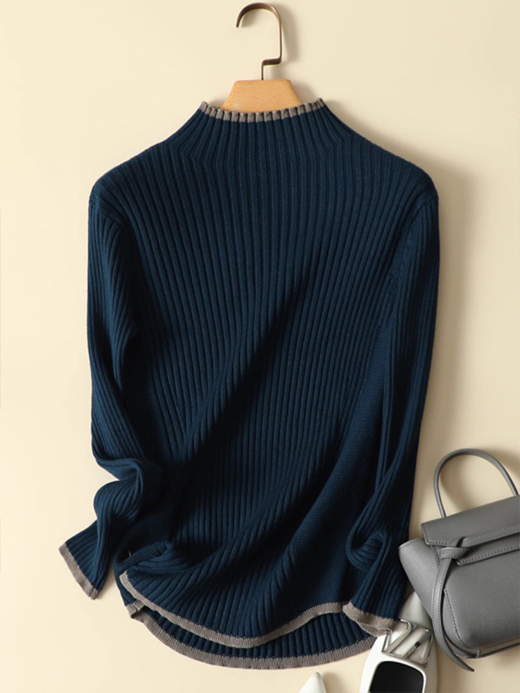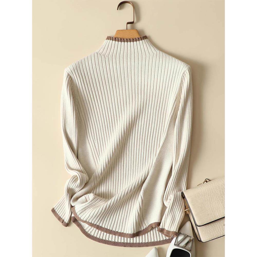 📚 秋冬女式半高领针织下装衬衫,西式修身新款式,百搭长袖针织上衣