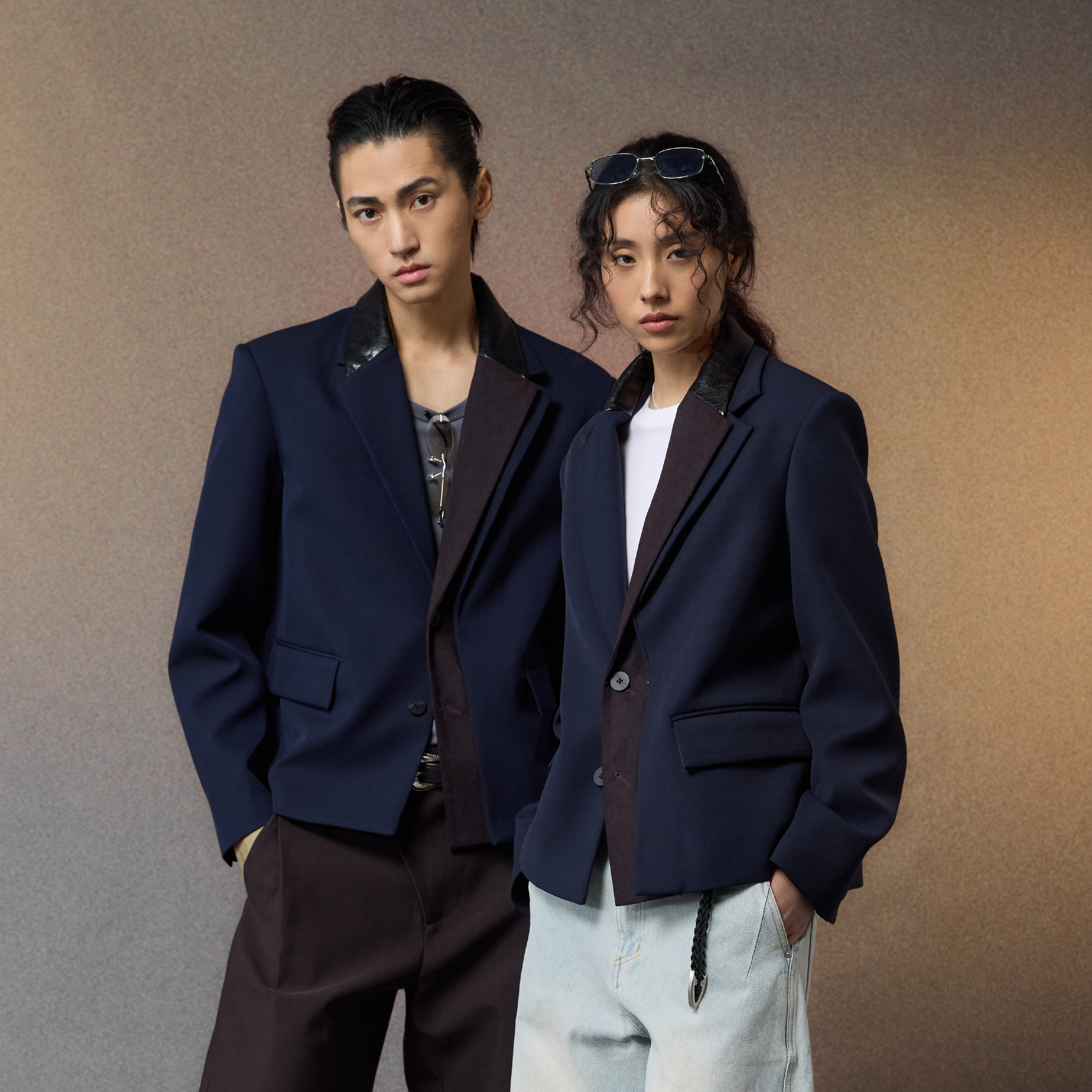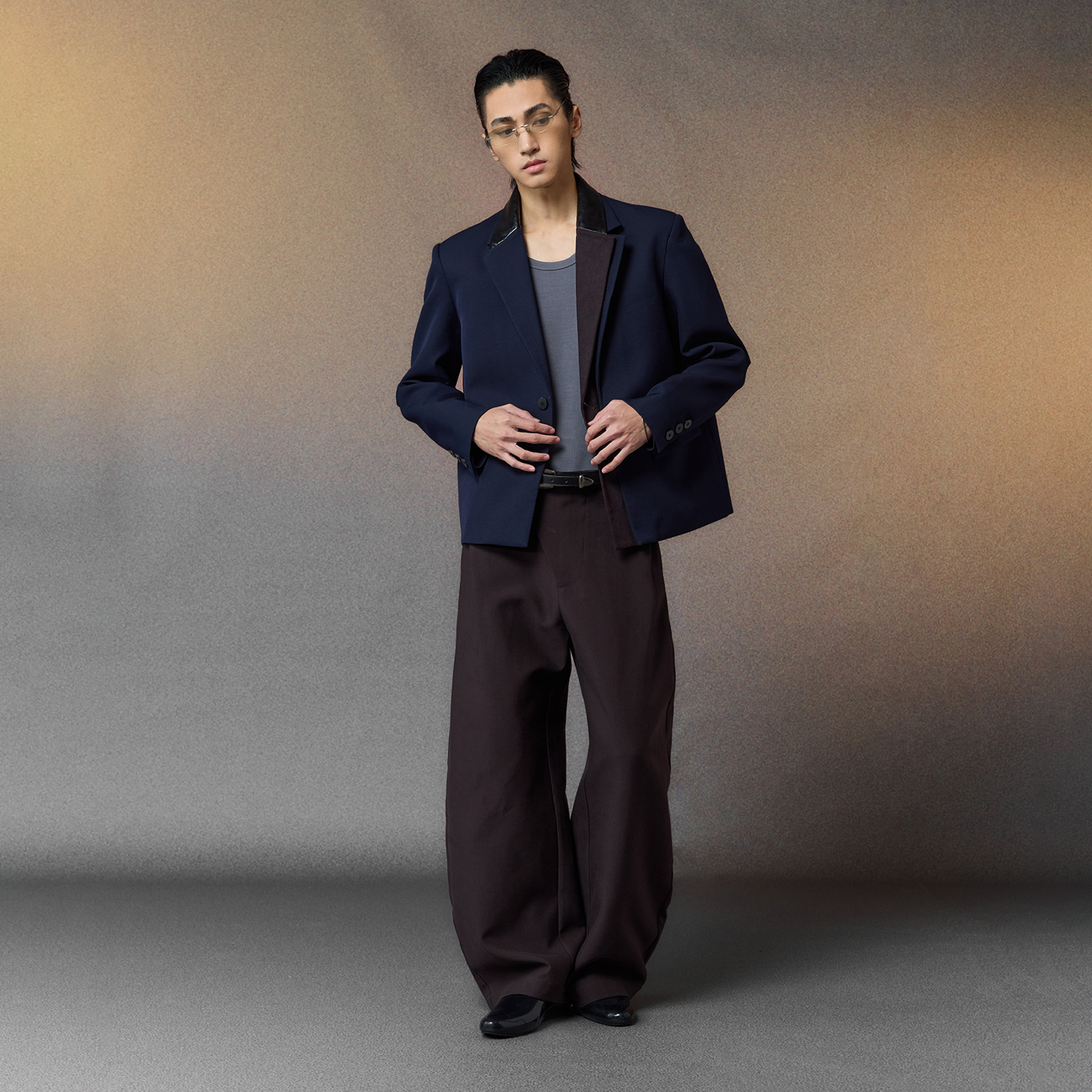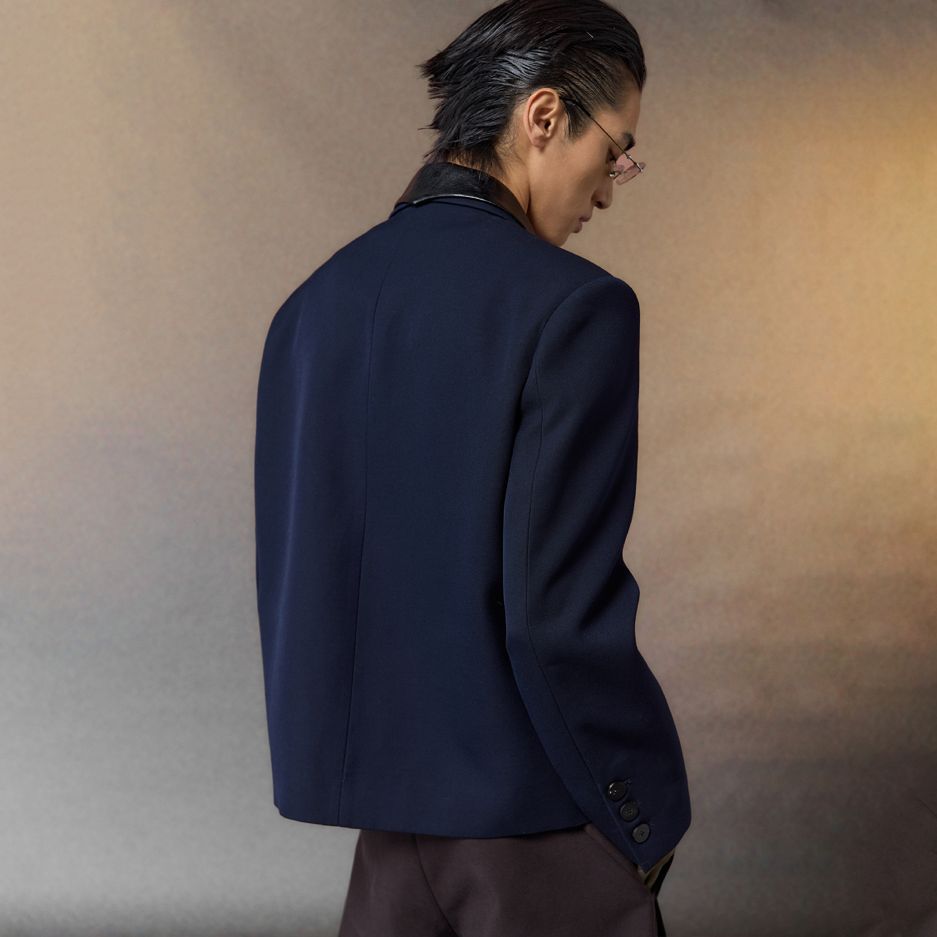 📚 芸蚁〔和平饭店〕重磅高密精纺异料撞色皮革拼接垫肩西装