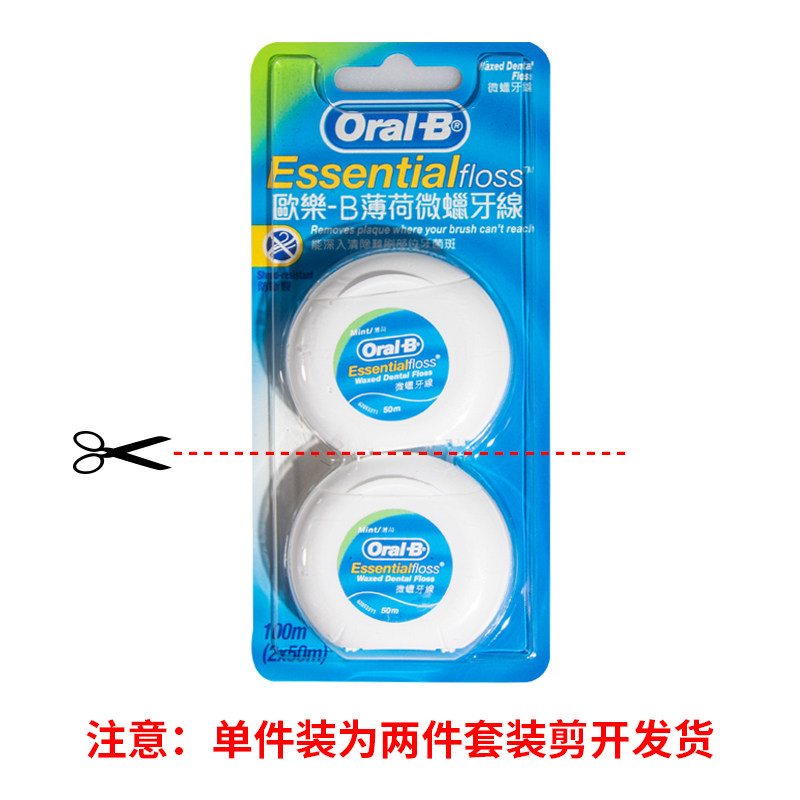 📚 细滑oralB欧乐B微蜡无蜡扁牙线薄荷味进口牙线棒牙签舒适50m*2