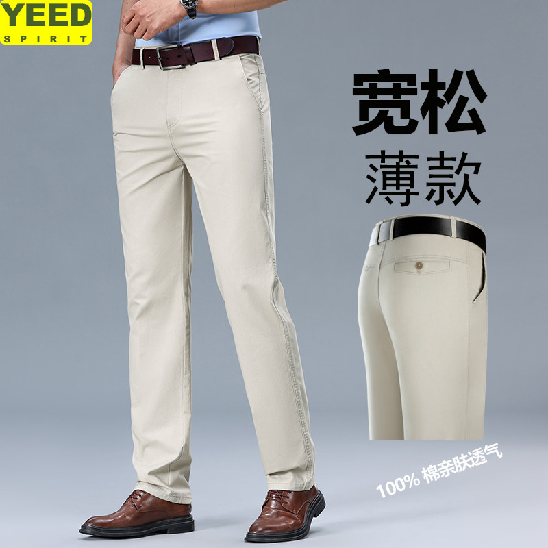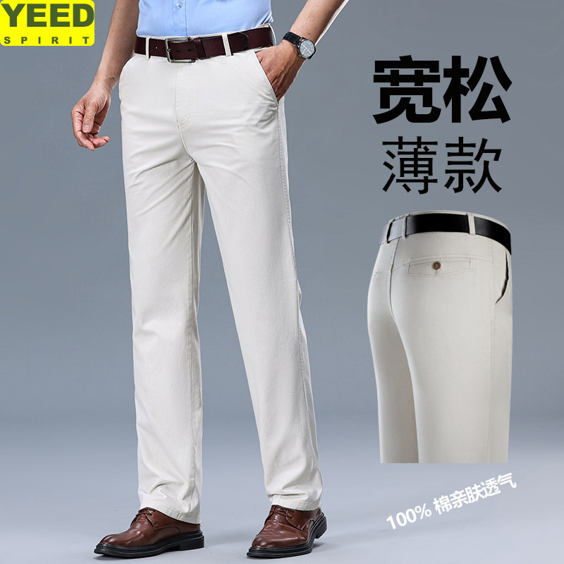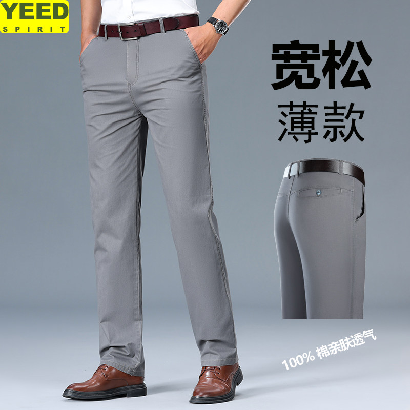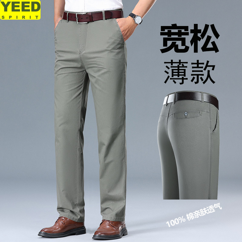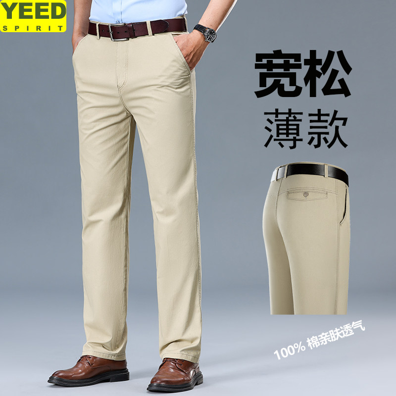 📚 夏季新款全棉休闲裤男商务休闲直筒高腰爸爸裤子男纯棉薄款高档次