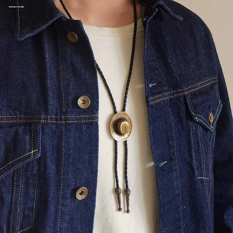 📚 欧美潮流男士项链个性领结项圈领绳真皮绳脖链长项坠配饰五星吊坠