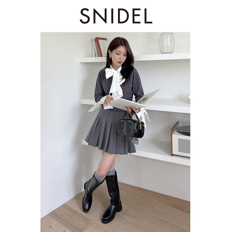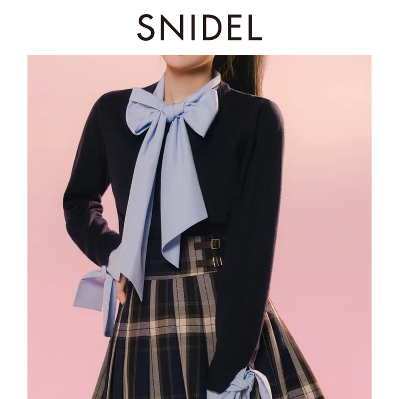 📚 SNIDEL2025秋冬新品甜美百搭蝴蝶结领结拼接袖针织开衫SWNT254229
