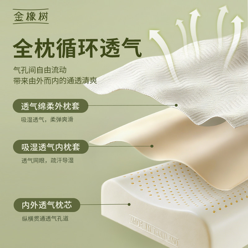 📚 金橡树天然乳胶枕头泰国进口枕芯护颈椎专用助睡眠成人家用泰享枕