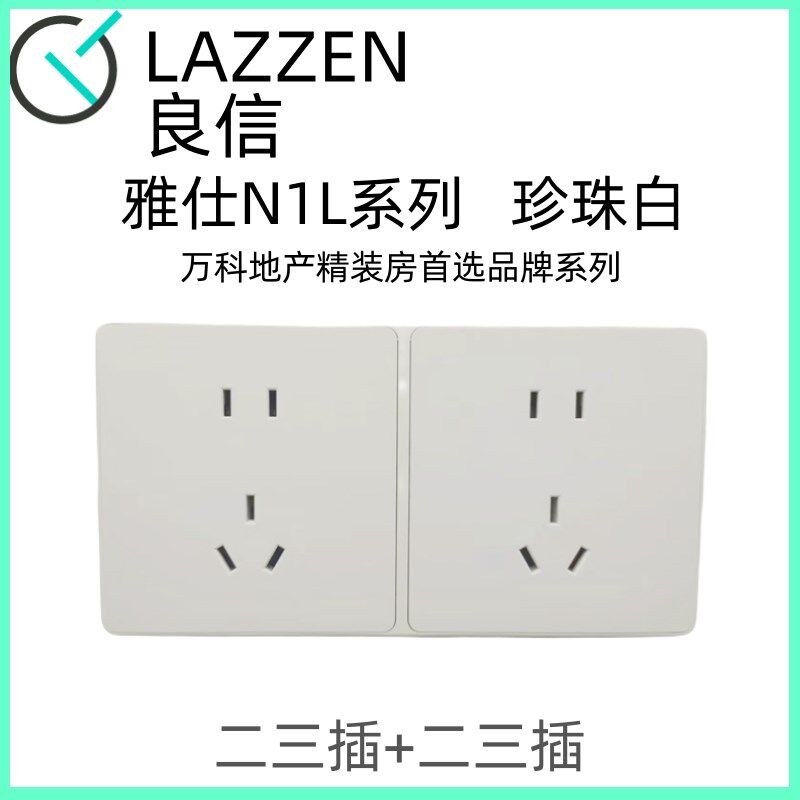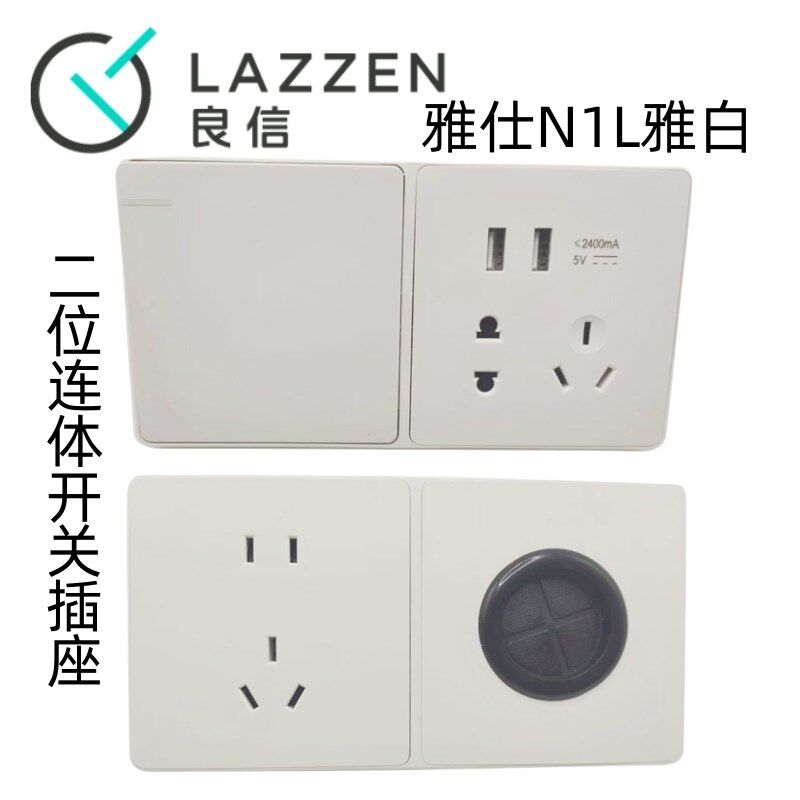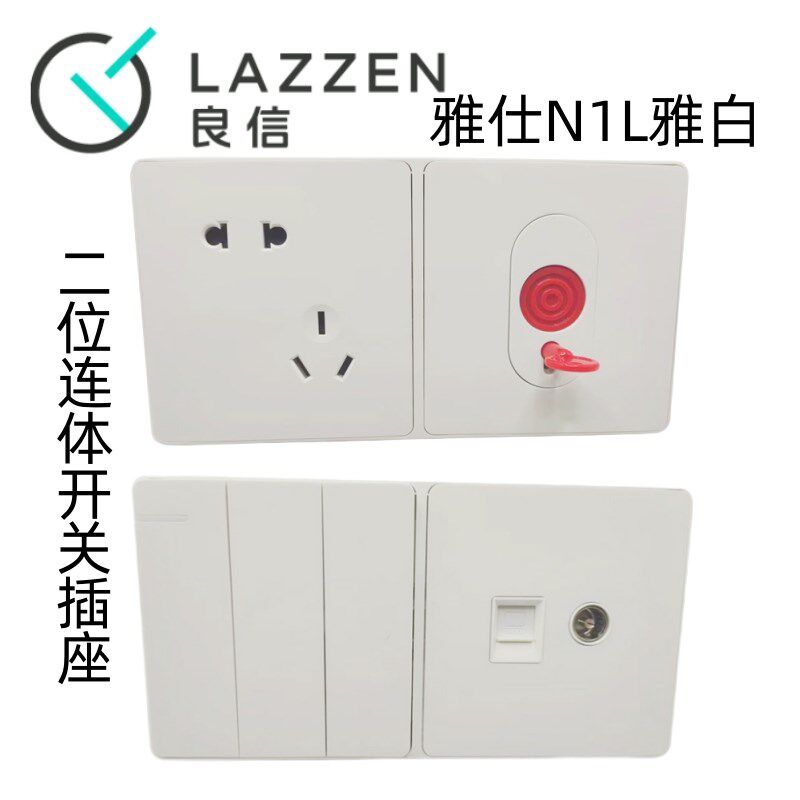 📚 Nader良信雅白单开双控五孔空调电脑2位联体连排家用开关插座面板