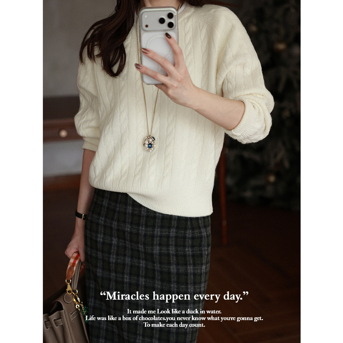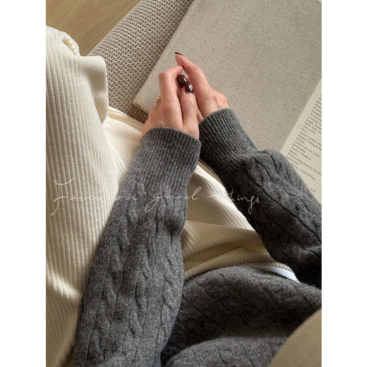 📚 PKH.HK特冬季敲好穿版型口碑返场厚暖全羊毛经典绞花圆领毛衣四色