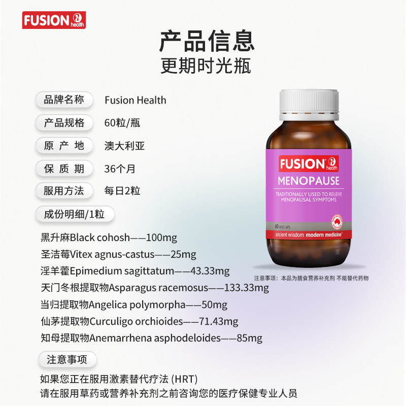📚 FusionHealth澳辉生黑升麻提取物更期时光瓶缓解潮热盗汗烦躁睡眠