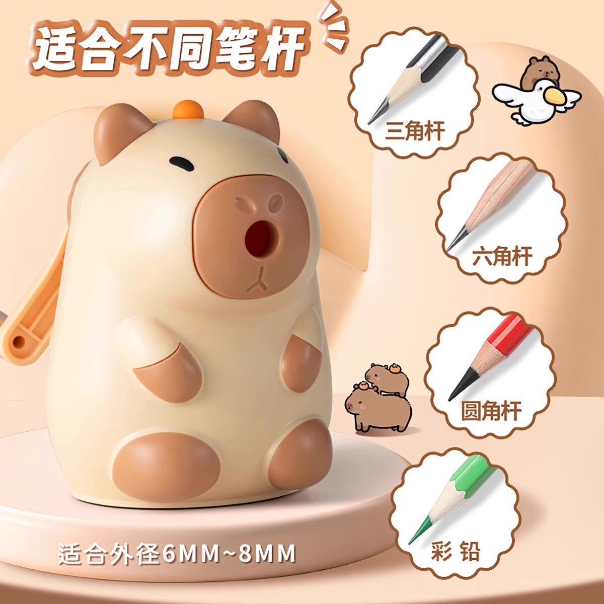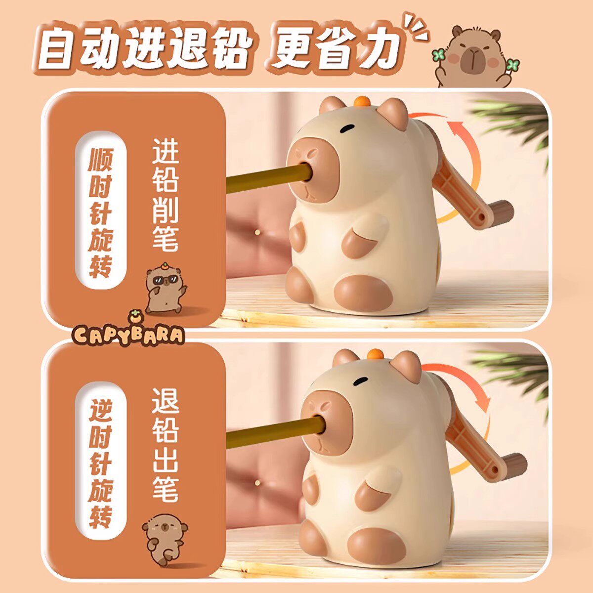 📚 卡皮巴拉卷笔刀手摇铅笔削笔器手动转笔刀小学生专用卡通可爱儿童刨笔刀女孩削笔机铅笔刀文具男孩自动进铅笔