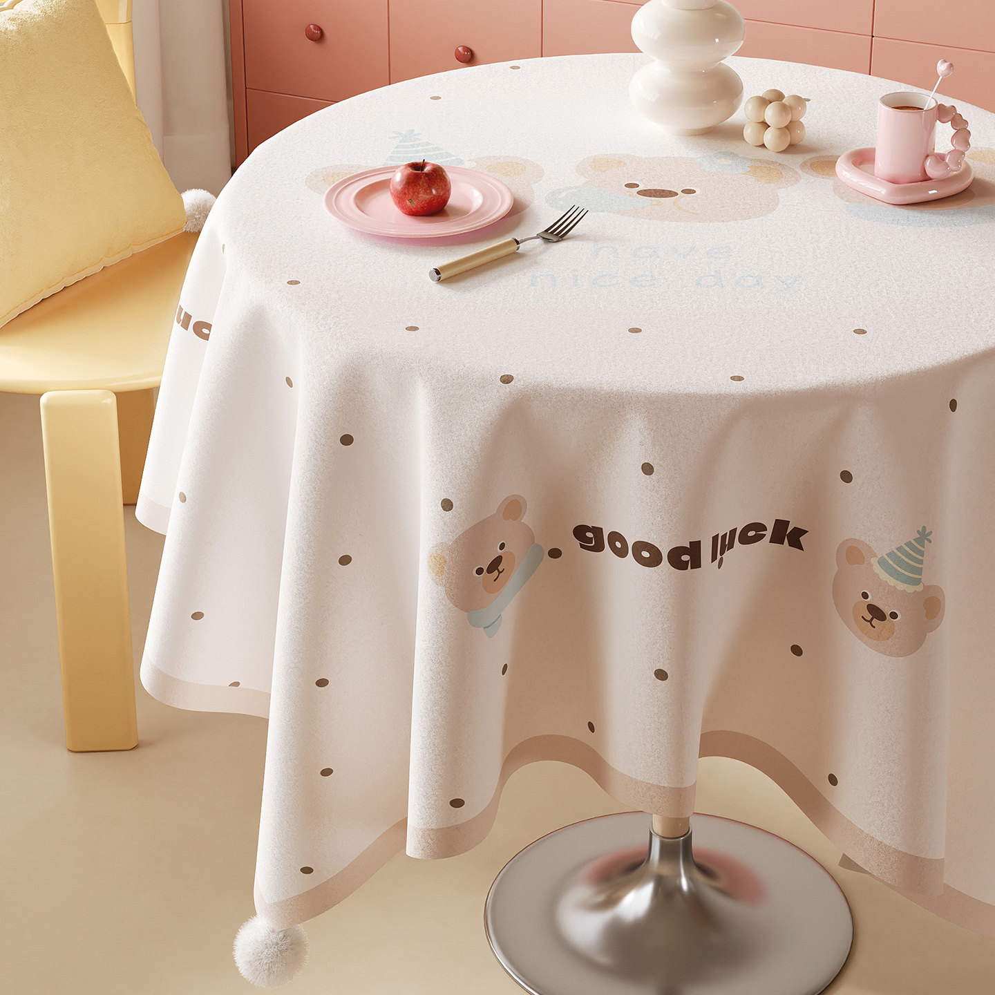 📚 卡通圆形桌布防水防烫免洗2025新款客厅小圆台装饰盖布圆茶几台布