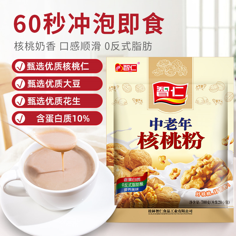 📚 智仁中老年核桃粉小袋装即食营养代早餐冲调饮品未添加白砂糖正品