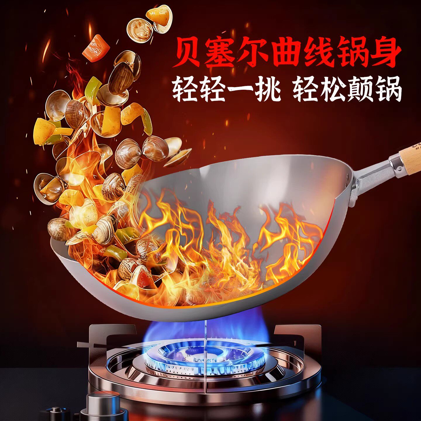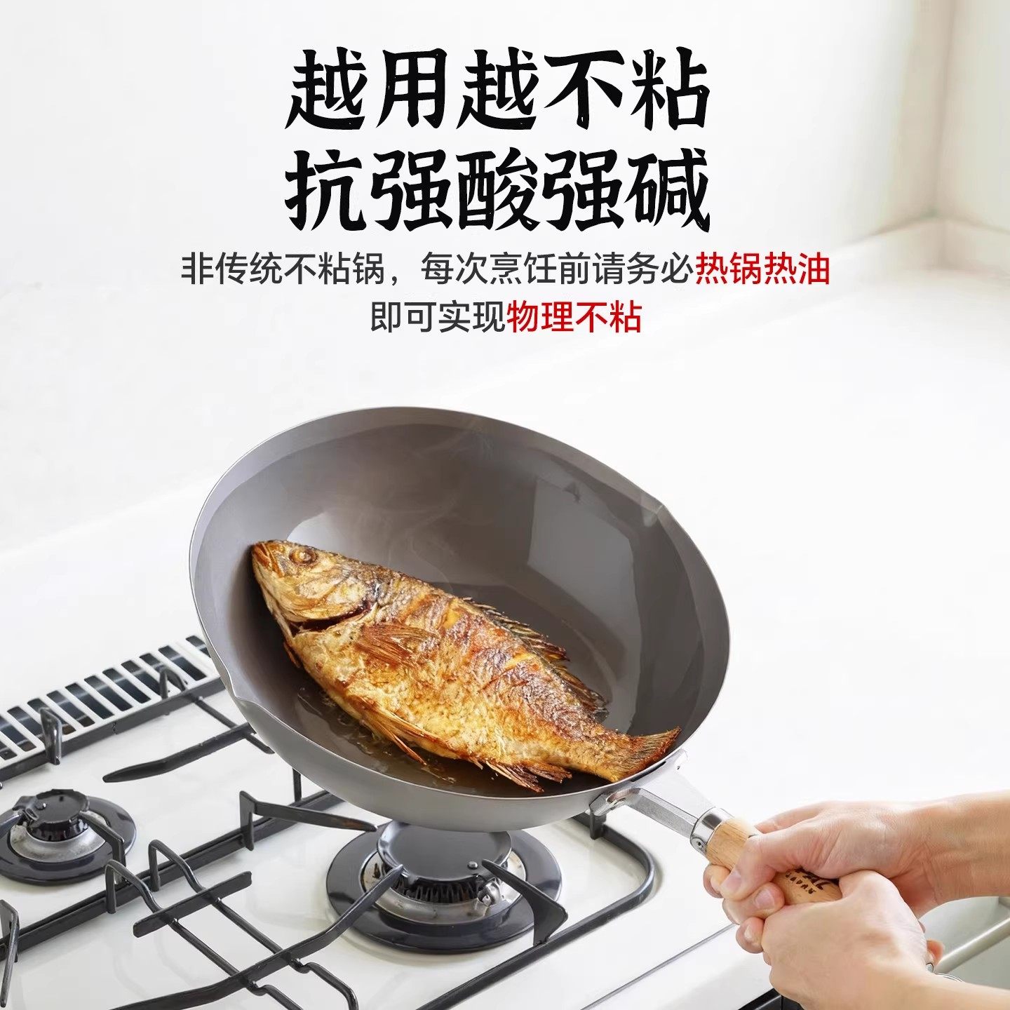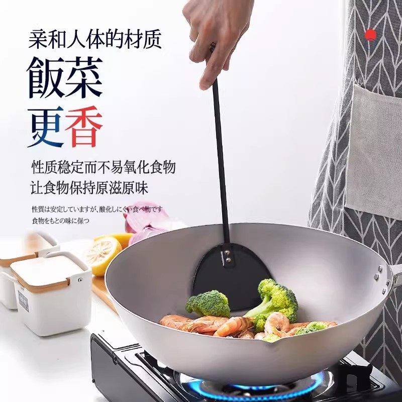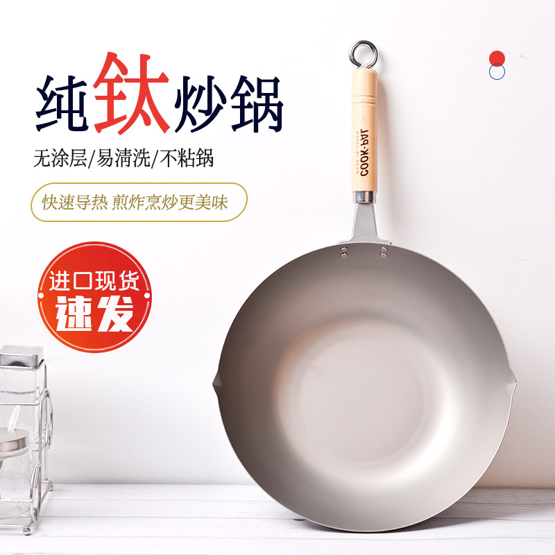 📚 COOK-PAL吉川进口纯钛炒锅无涂层平底钛锅超轻不易粘不锈少油烟