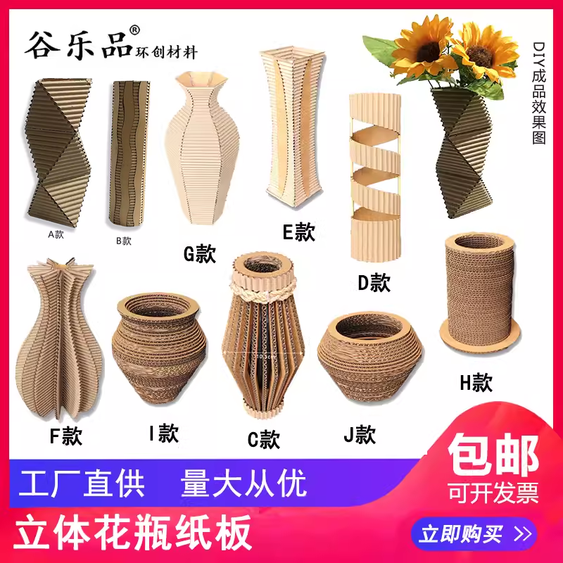 📚 谷乐品环创手工DIY幼儿园材料定制圆柱方形立体波纹花瓶纸板汇集