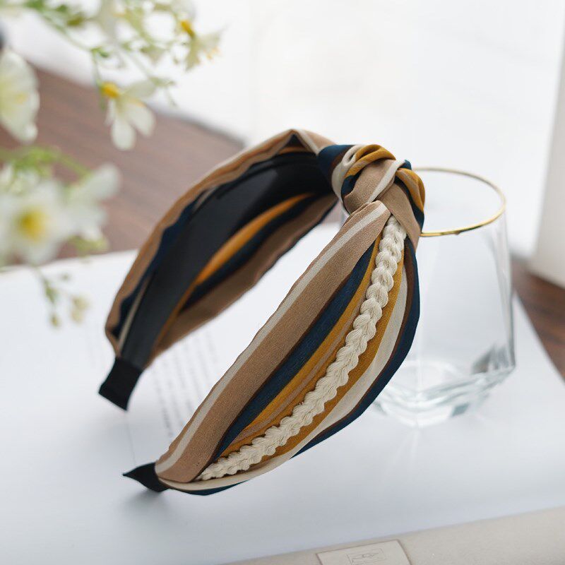 📚 复古港风布艺宽边打结高颅顶发箍女带齿防滑百搭新款洗脸发旅头箍