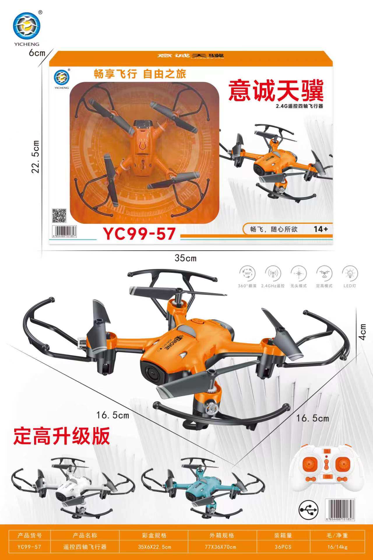 📚 意诚天骥YC99-56四轴飞行器定高版遥控无人机直升飞机玩具儿童男