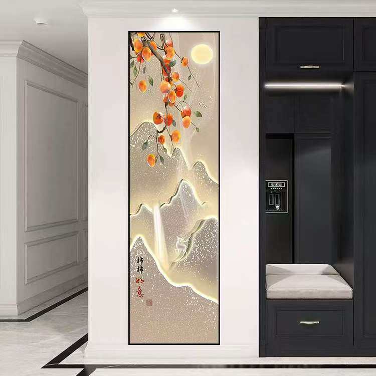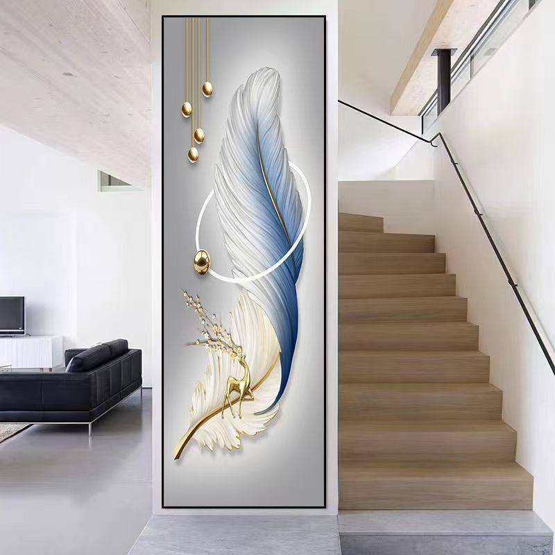 📚 竖版窄长条玄关装饰画现代轻奢楼梯过道画客厅细柱壁画3d自粘画