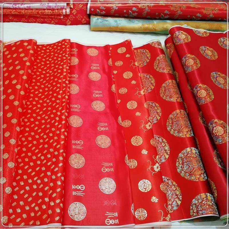 📚 新生宝宝棉被被面婴幼儿大红色织锦绸缎包被被罩唐装手工布料包邮
