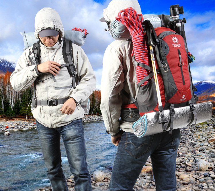 📚 尼龙Pentagram五角星旅行防泼水登山包 户外双肩徒步骑行男女背包