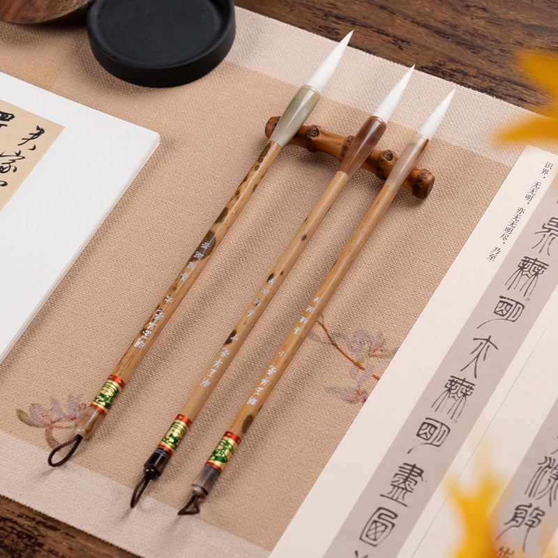 📚 善琏湖笔 明玉 羊毫隶书毛笔书法专用初学者入门细光锋纯羊毫篆书中楷兼毫毛笔楷书行书草书书法专业级套装