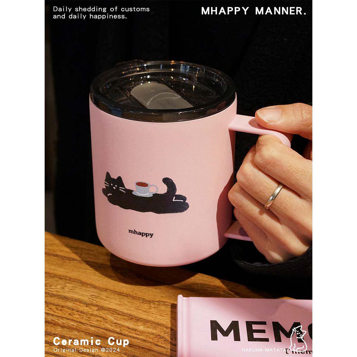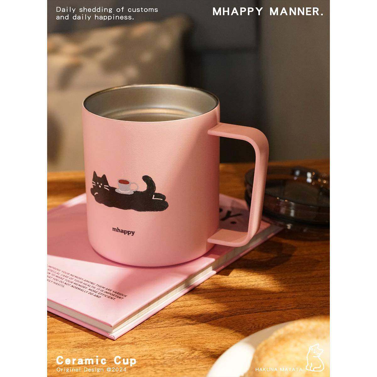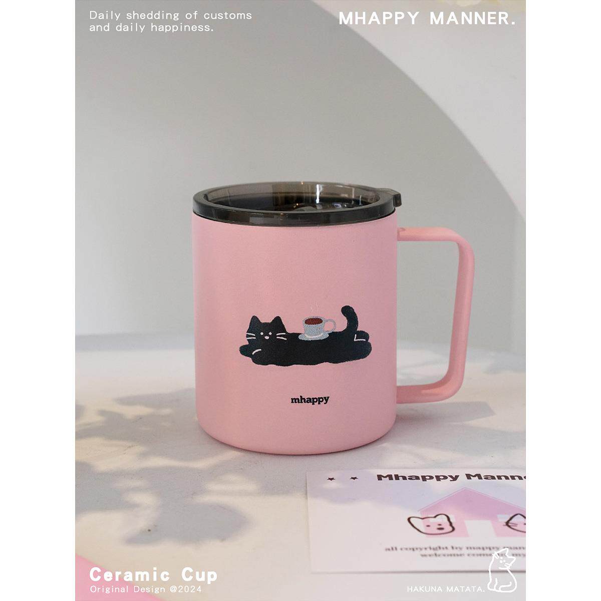 📚 MhappyManner 原创粉色咖啡小猫随手保温马克杯牛奶304不锈钢水杯