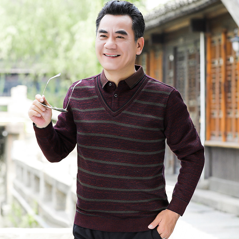 📚 爸爸毛衣加绒加厚保暖假两件老头衫秋冬季中老年人男爷爷装上衣服