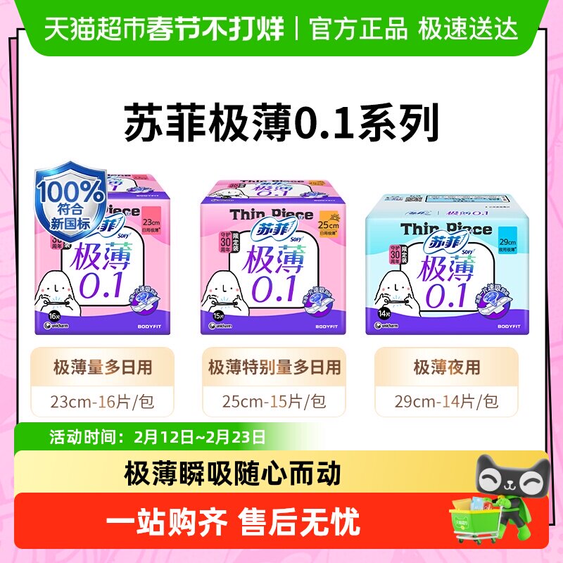 📚 苏菲卫生巾弹力贴身极薄0.1日用姨妈巾250/290/230mm【官方正品】