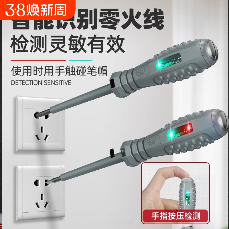 📚 螺丝刀彩光电笔电工专用智能感应测电笔测漏电断电压LED报警电笔