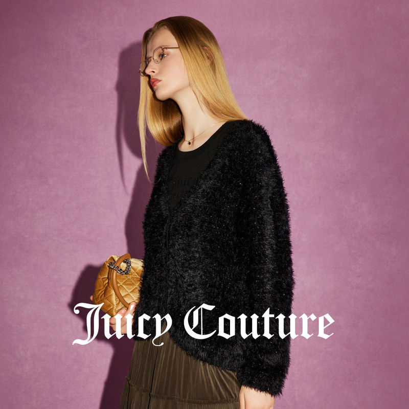 📚 Juicy Couture橘滋女装夜游LOGO纽扣茸感女式毛衣外套