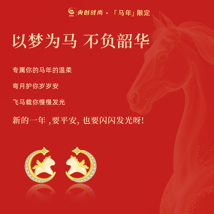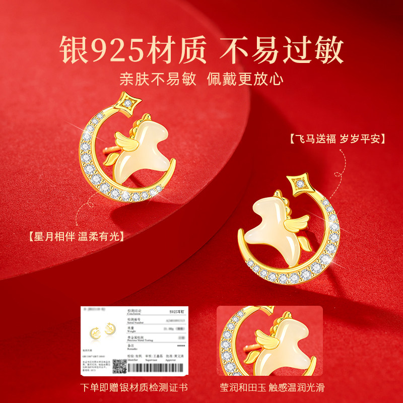 📚 中国黄金央创马年本命年小马耳钉女耳饰本命年礼物情人节礼物S925