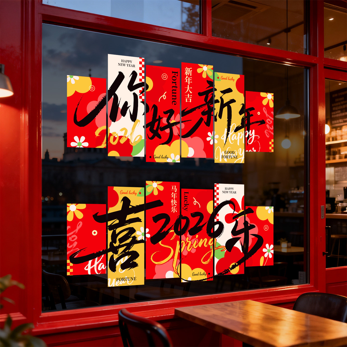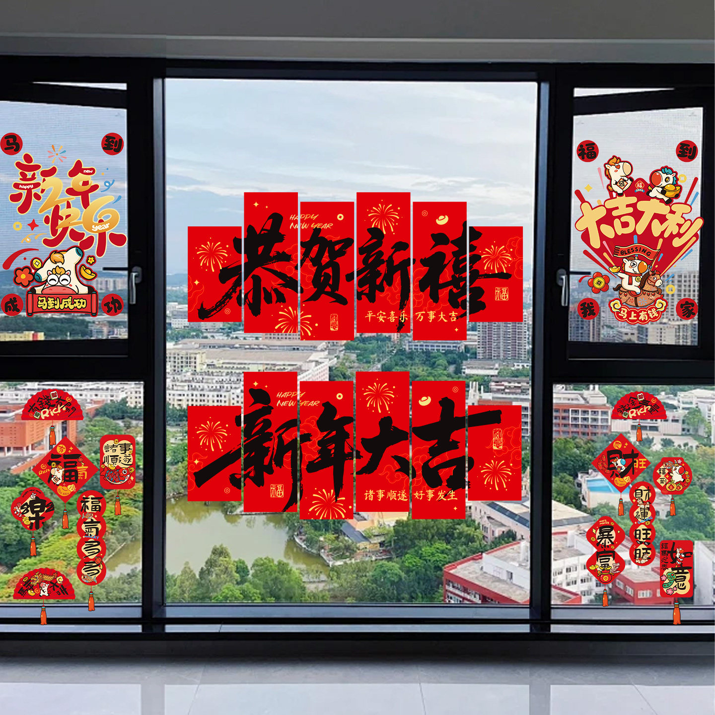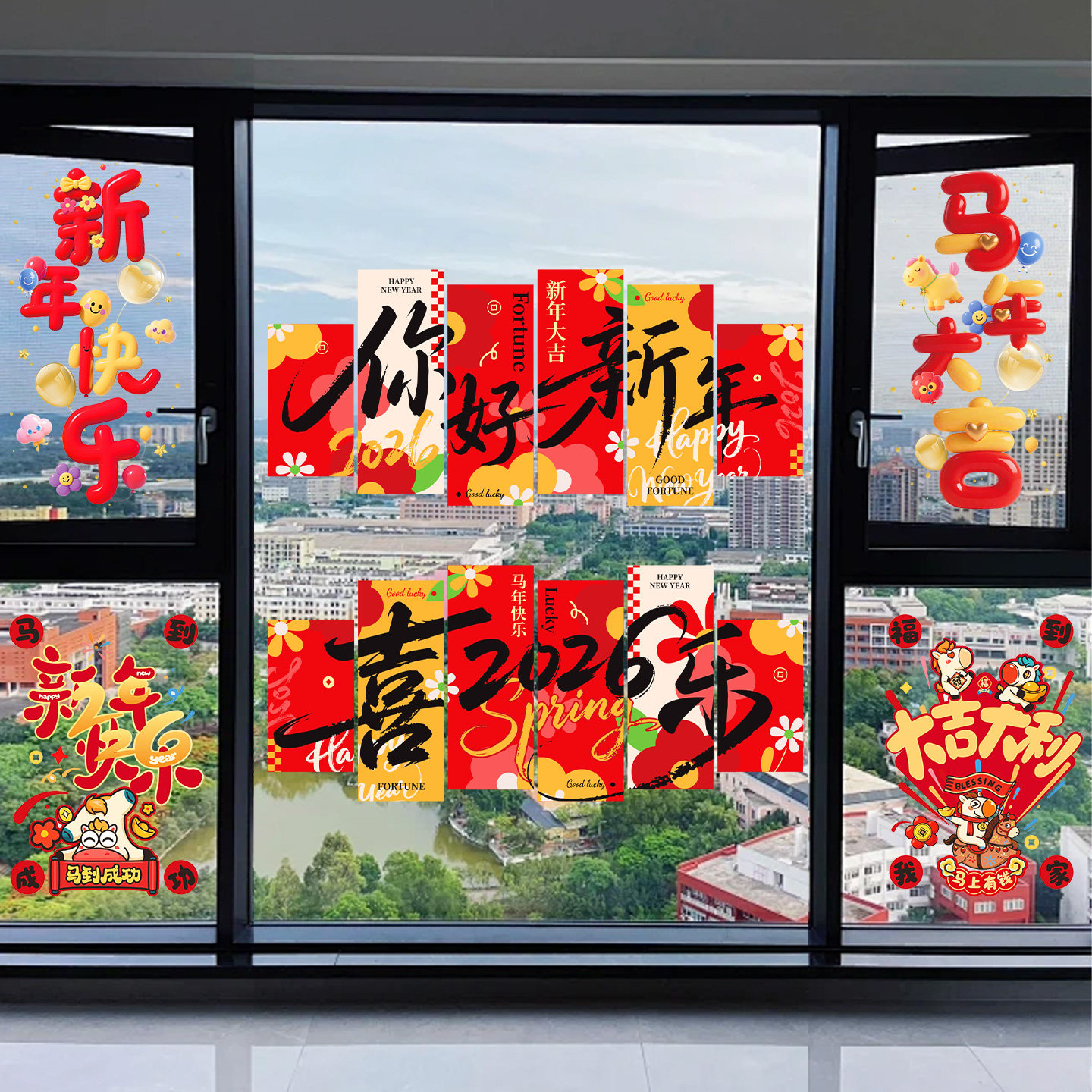 📚 2026马年新年装饰静电玻璃门贴纸春节家中场景布置氛围静电窗贴画