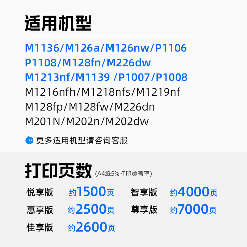 📚 天色适惠普M1136硒鼓M126a/nw P1108 P1106墨盒M128 M1213碳粉盒M1216 M202 M226打印机墨粉盒CC388A 88A硒鼓