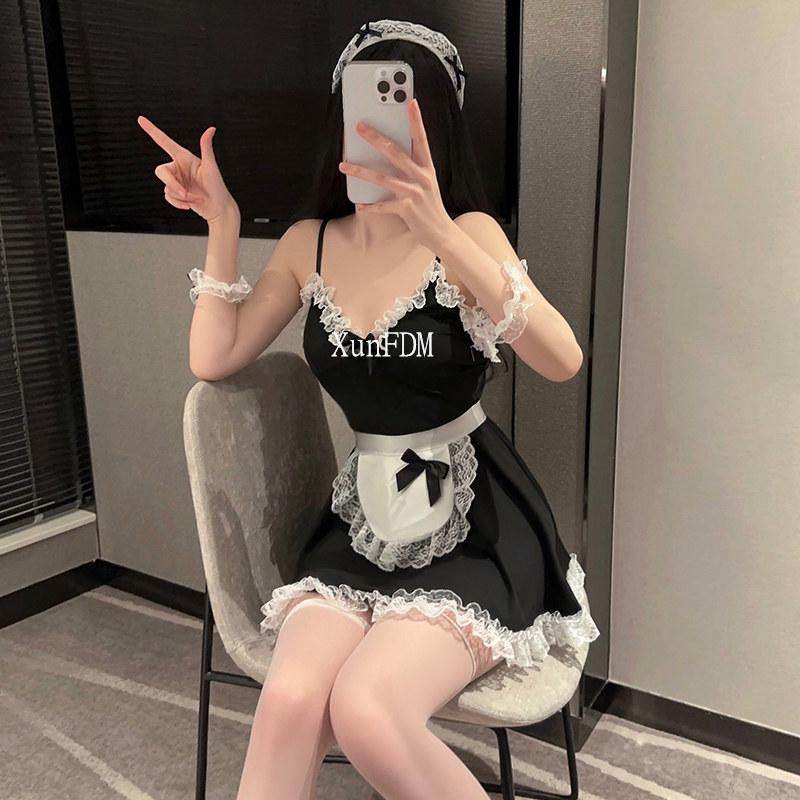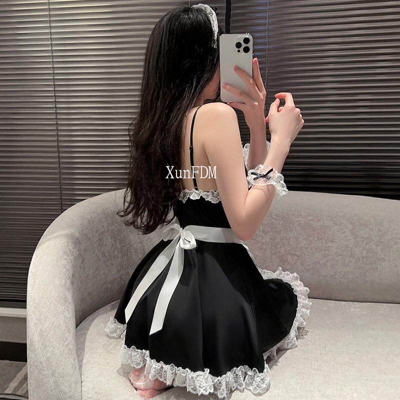 📚 驯服的猫 纯欲性感黑白小花边cos围裙女仆短裙