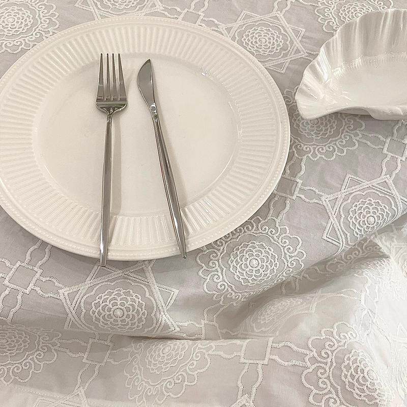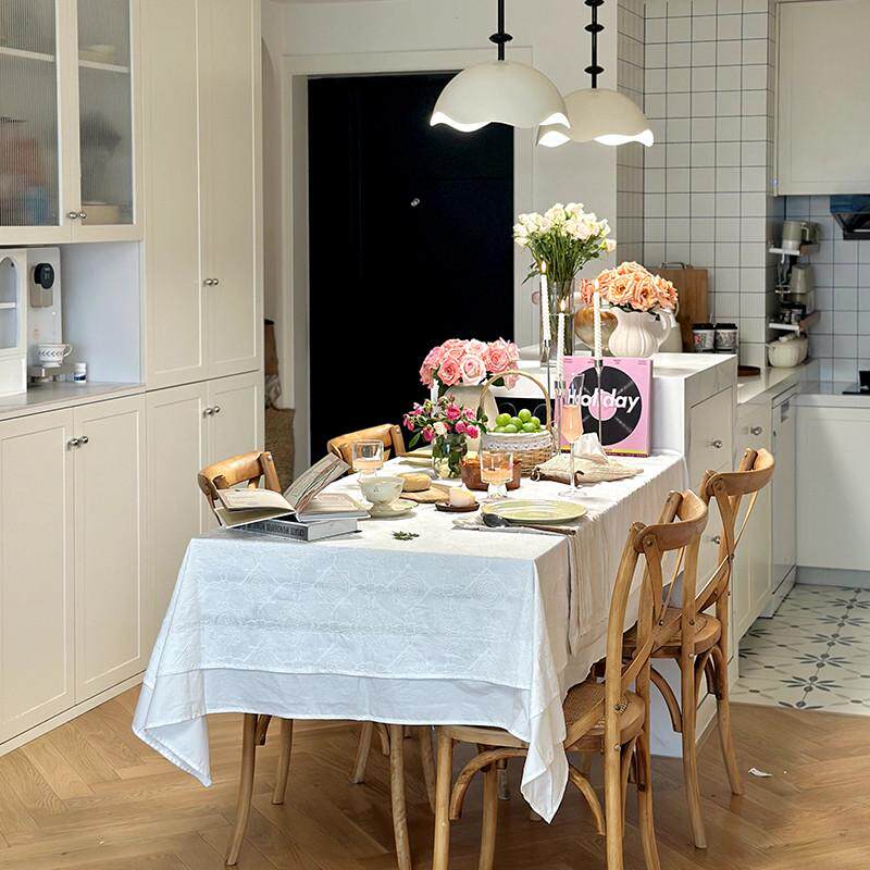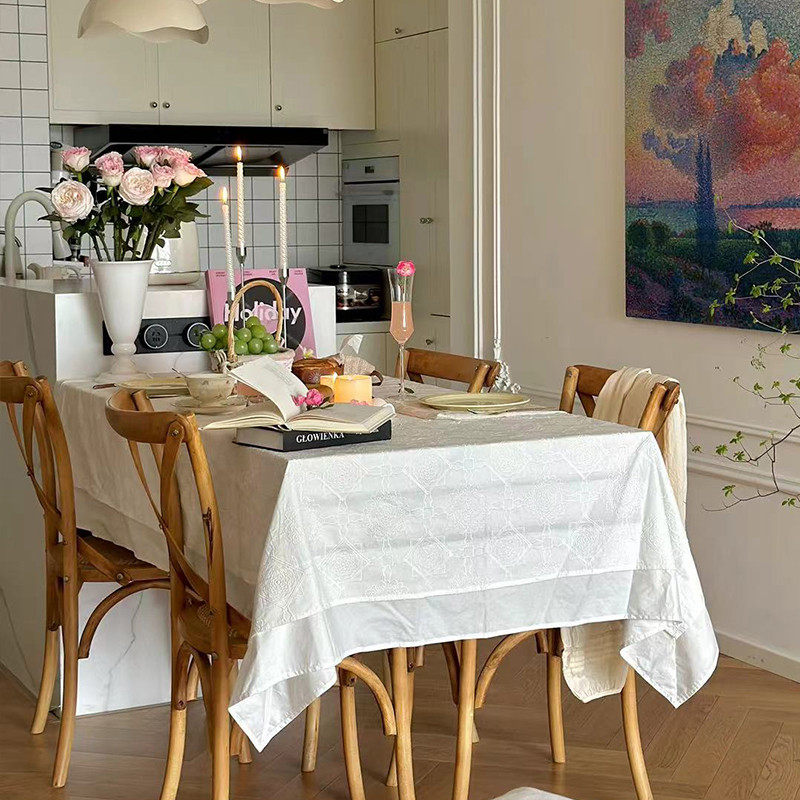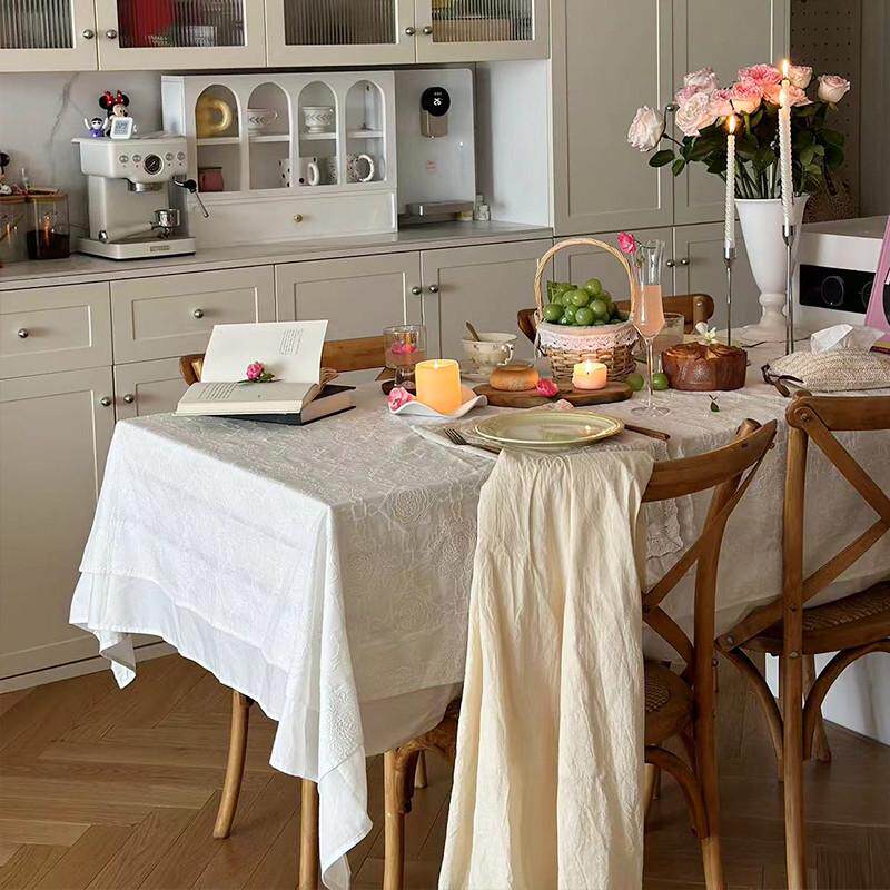 📚 纯白法式浪漫刺绣桌布氛围高级感防水长桌圆桌2024新款茶几台布