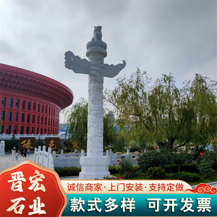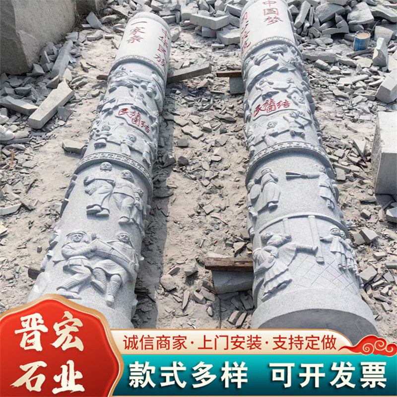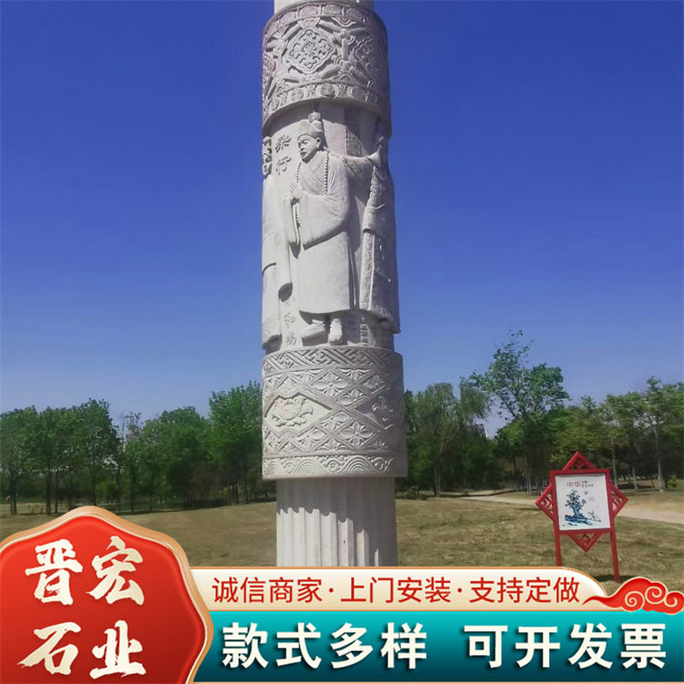 📚 石雕文化住支持加工定制 大型文化广场石雕柱子 圆形大理石石龙柱