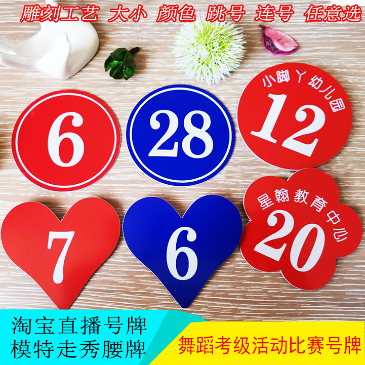 📚 抖音直播间号码牌舞蹈考级比赛编号牌带别针塑料数字牌模特胸腰牌