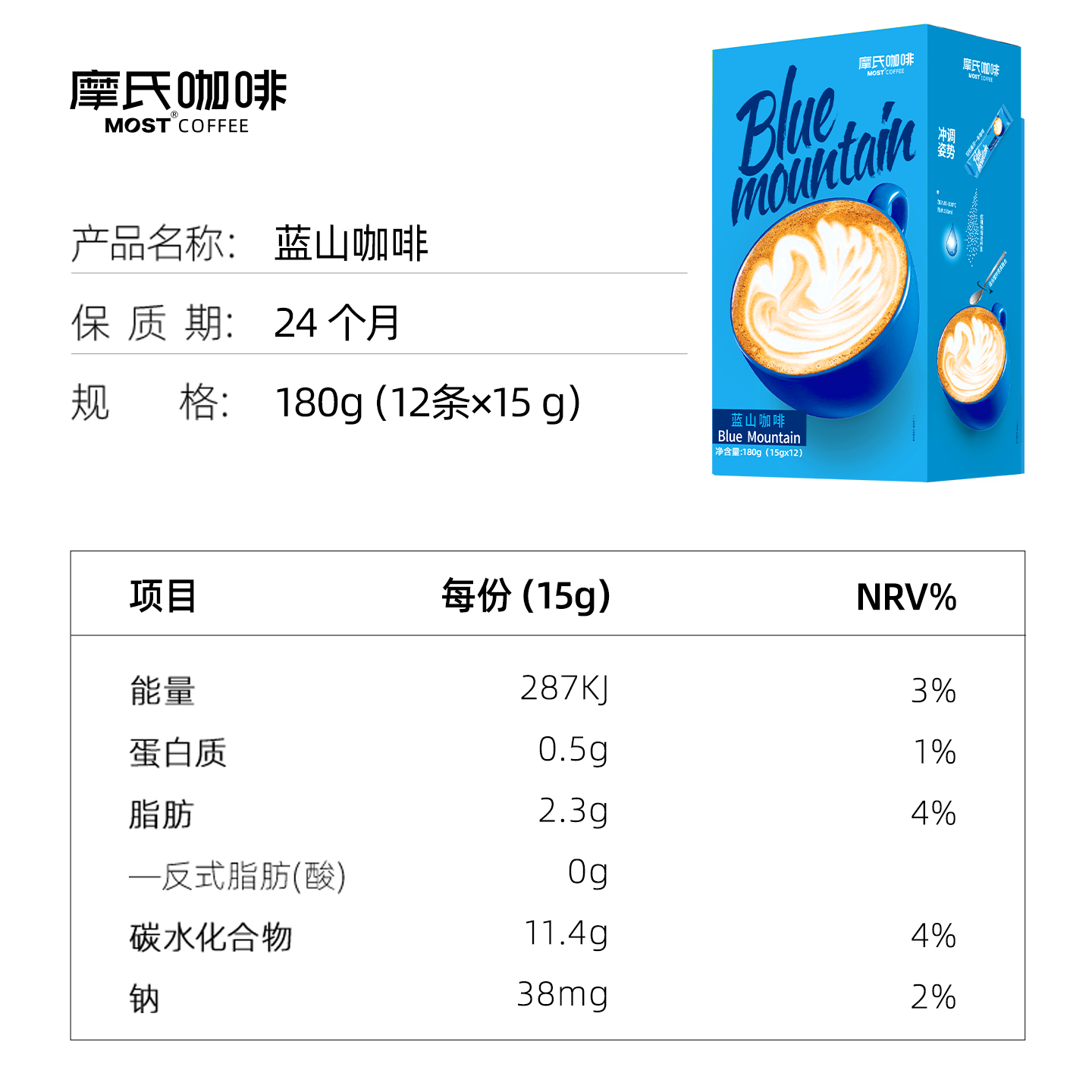 📚 摩氏咖啡蓝山风味咖啡特浓提神原味偏甜三合一速溶咖啡12条3盒装