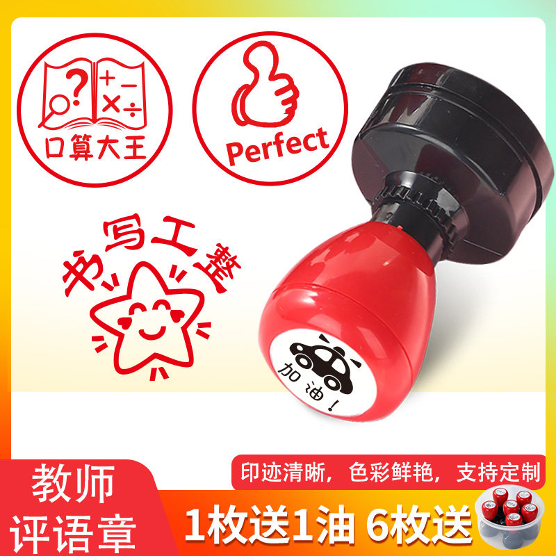 📚 大号印章教师用趣味卡通批改作业评价小学老师评语优秀表扬奖励奖