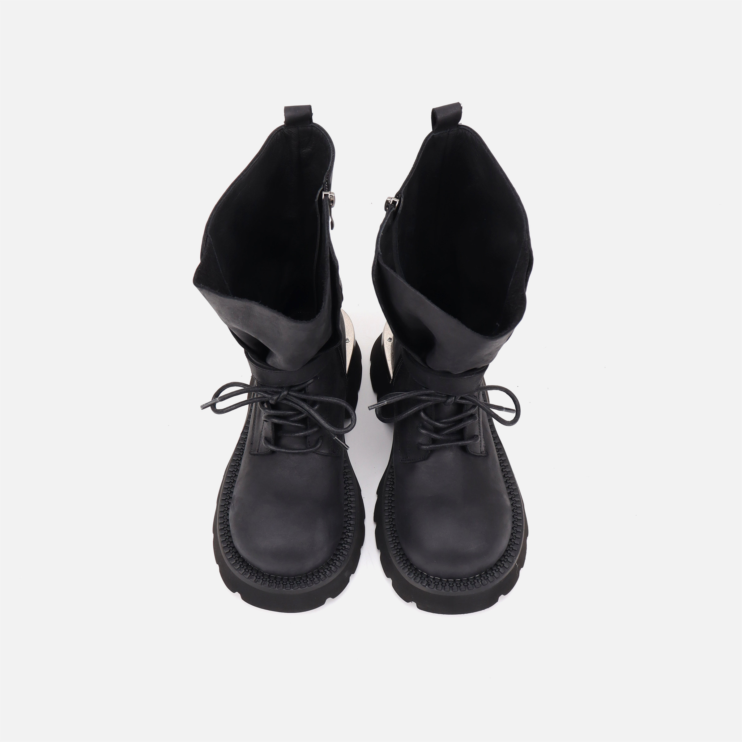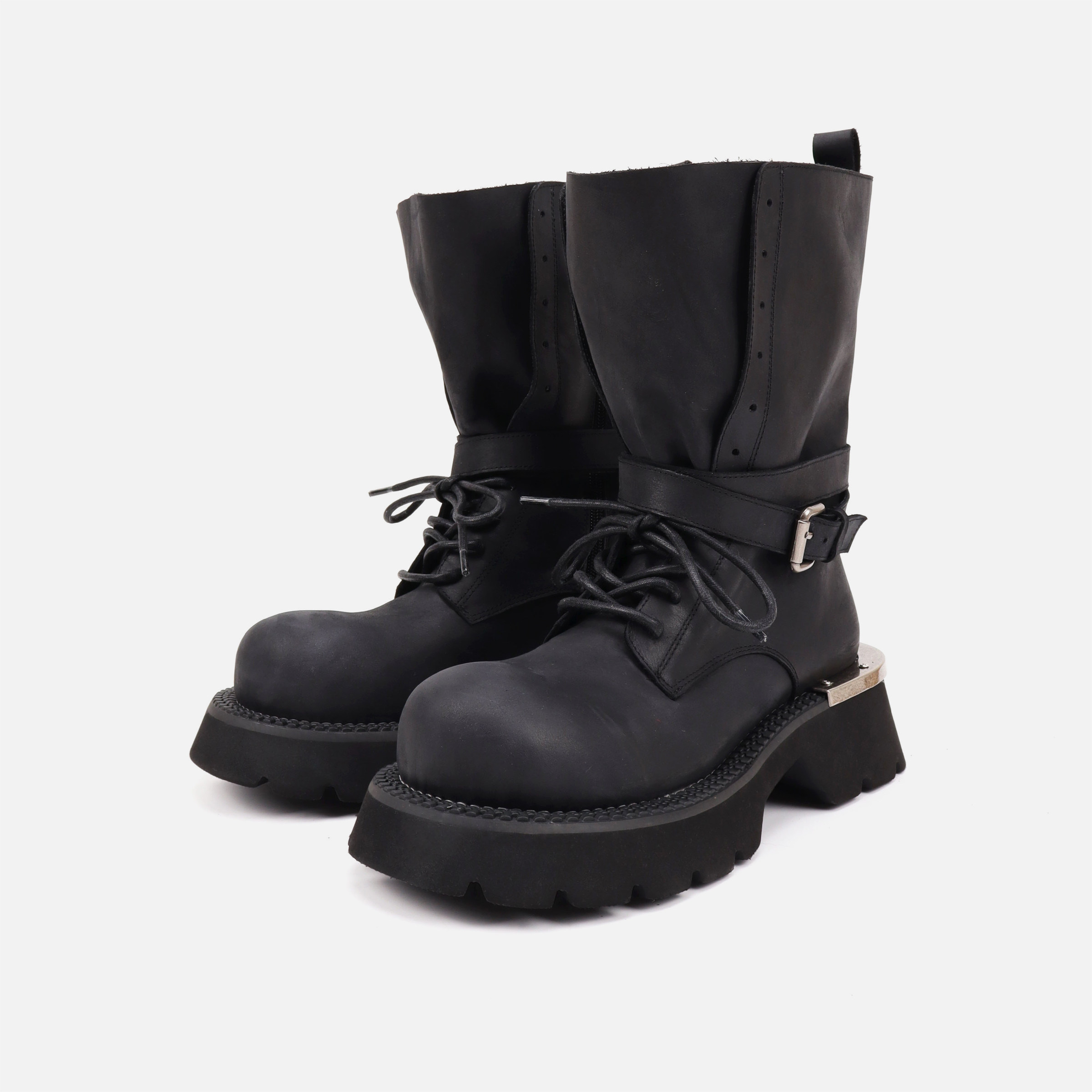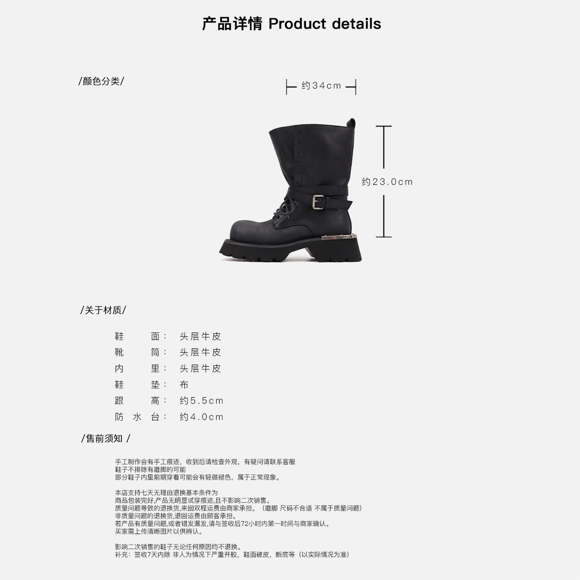 📚 notdetailed原创 暗黑工装靴复古中筒短靴圆头厚底马丁靴男女同款